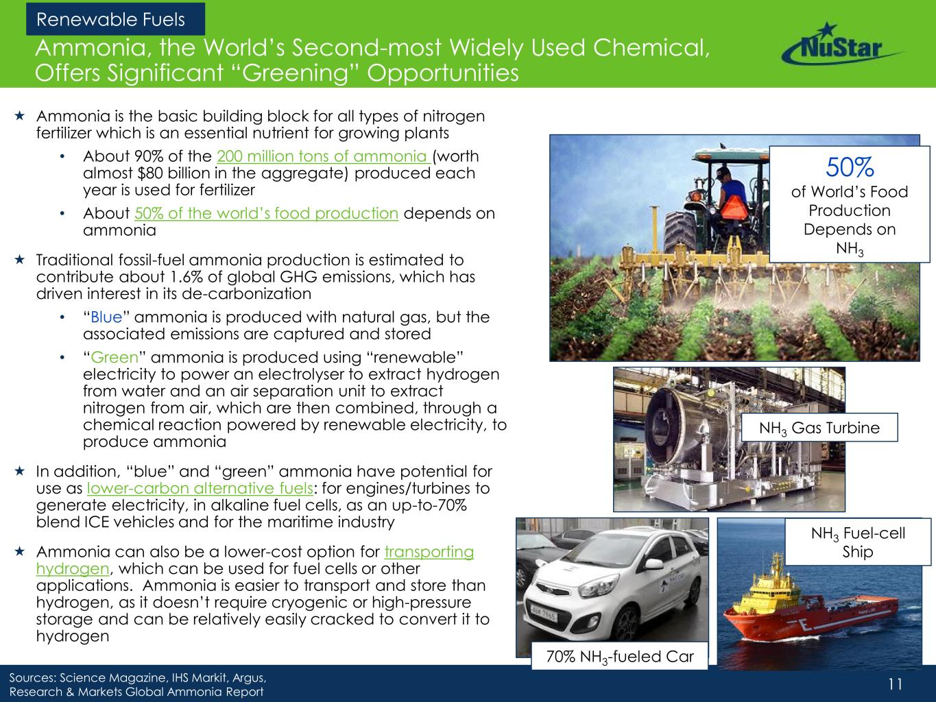 10 0 1000 2000 3000 4000 5000 6000 7000 Portland Selby Stockton Wilmington NuStar’s West Coast Terminals Renewable Fuel Growth* 2017 2018 2019 2020 2021 2022 … And We Continue to Partner With Key Customers to Develop Our Renewable Fuels Network, as LCFS Mandates Expand to Additional Markets Complete Portland Convert 36,000 bbls to biodiesel Convert 57,000 bbls to renewable diesel Convert additional 43,000 bbls to renewable diesel Selby Construct additional 400,000 bbls of renewable diesel storage 4Q24 Est. Construct truck-loading for renewable diesel Multimodal shipment of SAF Convert 208,000 to SAF Modify rail to handle renewable feedstock offloading Stockton Convert 30,000 bbls to biodiesel Convert 73,000 bbls to renewable diesel and expand renewable diesel handling to all 15 rail spots Convert 151,000 bbls to renewable diesel Connect to ethanol unit train offload facility Wilmington Convert 160,000 bbls to renewable diesel Reconfigure dock for enhanced marine capability 1H26 Est. ★ Since establishing ourselves as an “early mover” in the renewable fuels logistics market on the West Coast over five years ago, we have developed an extensive renewable fuels logistics network to serve key global producers that spans across our West Coast footprint ★ Our West Coast assets now generate ~35% of our storage segment revenues, and our revenue is expected to continue to grow as we complete additional projects across our West Coast footprint * Includes biodiesel, ethanol, renewable diesel, renewable feedstock and SAF MBPY Renewable Fuels