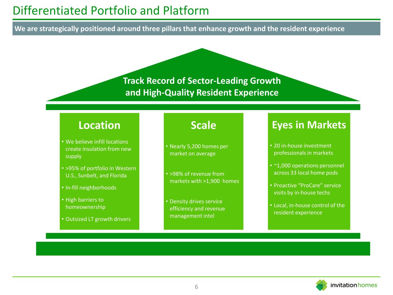 A Business Model for All Seasons We believe our business and proven strategy position us well against economic uncertainty 5 The location and quality of our homes attracts a higher-end SFR customer; new residents have an average annual income of approximately $134,000, and an income to rent ratio of 5.2x as of 4Q22 Our investment-grade rated balance sheet provides us with $1.263 billion of liquidity as of December 31, 2022, with no debt maturing prior to 2026 and the majority of our debt unsecured and at fixed or swapped to fixed rates Single-family rental homes with shorter duration leases may provide an effective hedge in an inflationary environment According to John Burns, national average single-family rent growth has never had a meaningful decline in nearly forty years of tracking the data Dallas ________________________________________________ (1) Source: John Burns Real Estate Consulting, Burns Single-Family Rent Index, published December 2022.