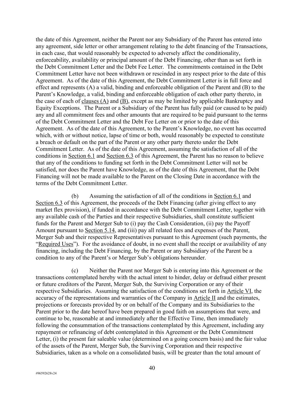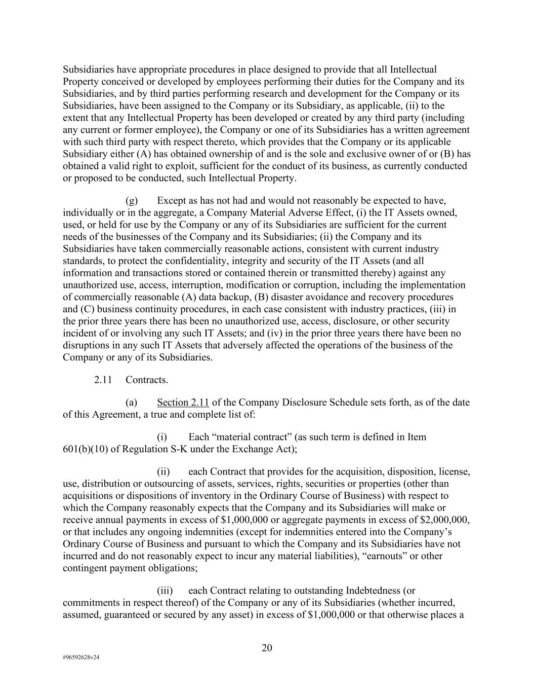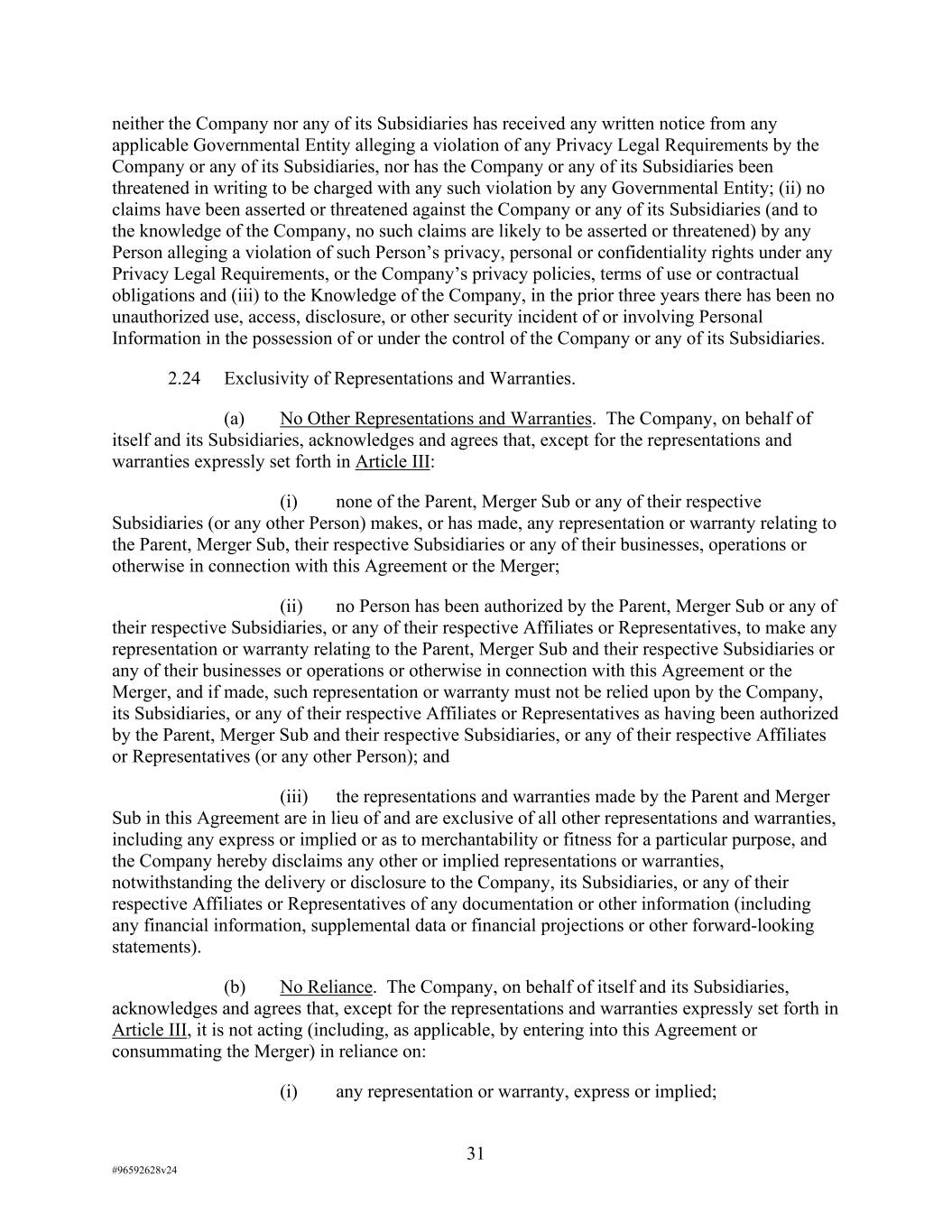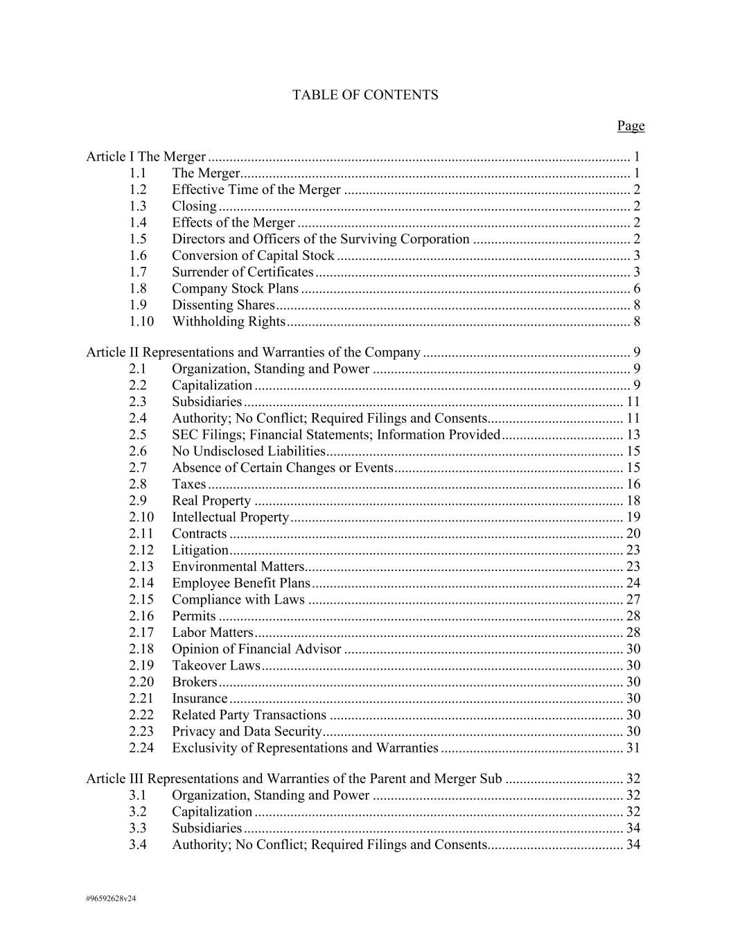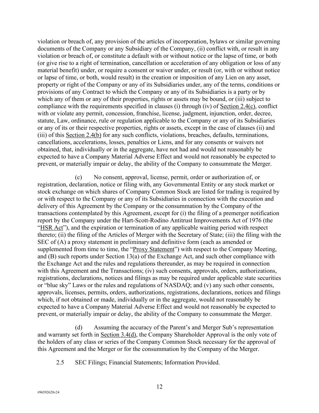 The foregoing description of the Merger Agreement and the transactions contemplated thereby in this Current Report on Form 8-K is only a summary and does not purport to be complete and is qualified in its entirety by reference to the full text of the Merger Agreement, a copy of which is filed as Exhibit 2.1 hereof and incorporated by reference herein. Such description is not intended to provide any other factual information about the parties to the Merger Agreement or their respective subsidiaries and affiliates. The Merger Agreement contains representations and warranties by each of the parties to Merger Agreement, which were made only for purposes of that agreement and as of specified dates. The representations, warranties and covenants in the Merger Agreement were made solely for the benefit of the parties to the applicable agreement, are subject to limitations agreed upon by the contracting parties, including being qualified by confidential disclosures made for the purposes of allocating contractual risk between the parties to the Merger Agreement instead of establishing these matters as facts, as well as by information contained in each party’s periodic reports filed with the SEC, and may be subject to standards of materiality applicable to the contracting parties that may differ from those applicable to investors. Investors should not rely on the representations, warranties and covenants or any descriptions thereof as characterizations of the actual state of facts or condition of such parties or any of their respective subsidiaries or affiliates. Moreover, information concerning the subject matter of the representations, warranties and covenants may change after the date of the Merger Agreement, which subsequent information may or may not be fully reflected in the parties’ public disclosures.