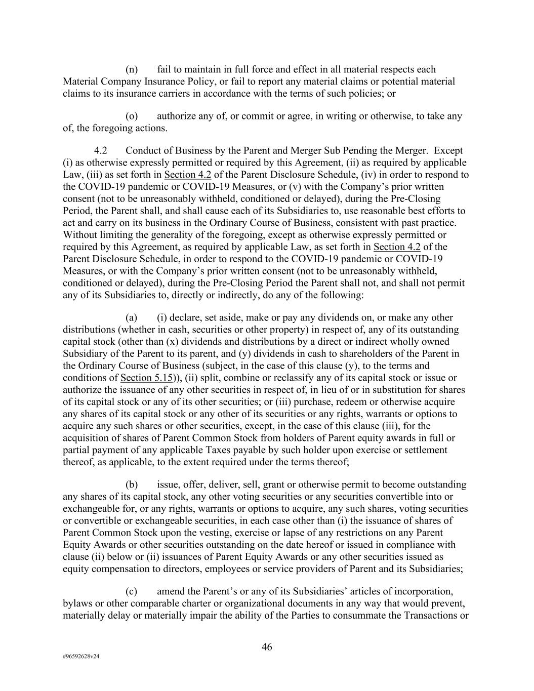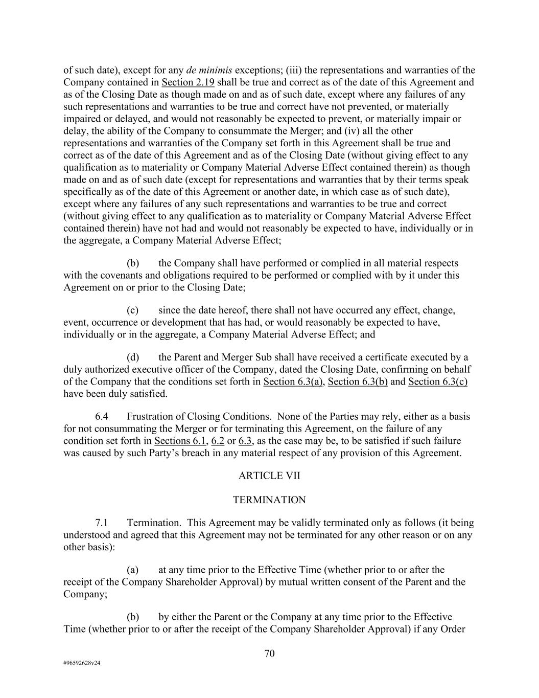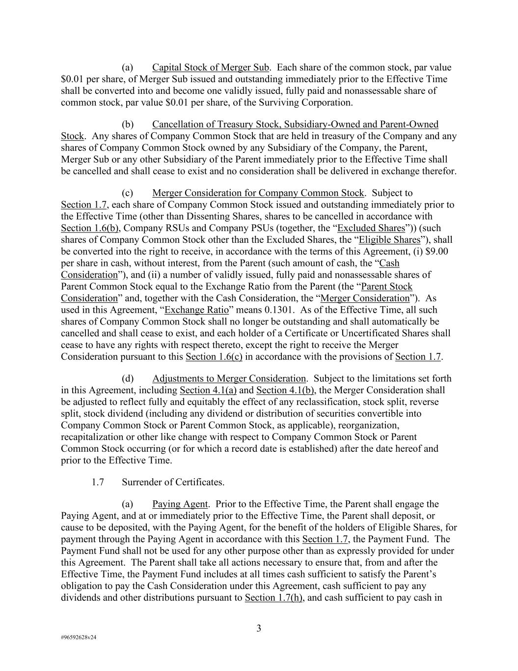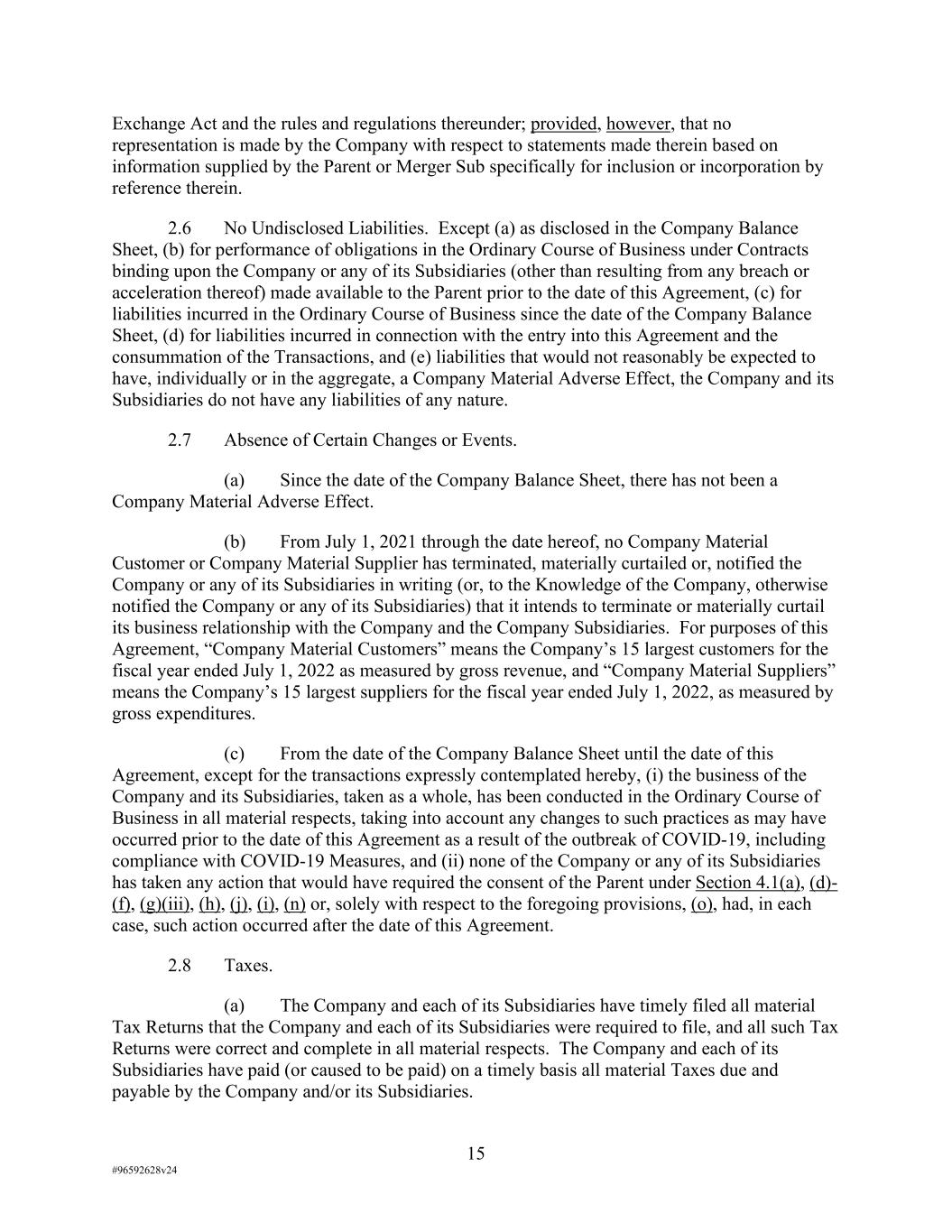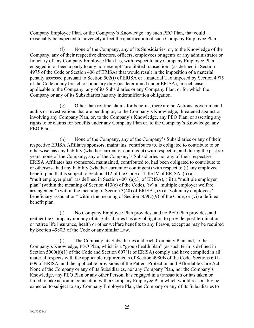 The foregoing description of the Merger Agreement and the transactions contemplated thereby in this Current Report on Form 8-K is only a summary and does not purport to be complete and is qualified in its entirety by reference to the full text of the Merger Agreement, a copy of which is filed as Exhibit 2.1 hereof and incorporated by reference herein. Such description is not intended to provide any other factual information about the parties to the Merger Agreement or their respective subsidiaries and affiliates. The Merger Agreement contains representations and warranties by each of the parties to Merger Agreement, which were made only for purposes of that agreement and as of specified dates. The representations, warranties and covenants in the Merger Agreement were made solely for the benefit of the parties to the applicable agreement, are subject to limitations agreed upon by the contracting parties, including being qualified by confidential disclosures made for the purposes of allocating contractual risk between the parties to the Merger Agreement instead of establishing these matters as facts, as well as by information contained in each party’s periodic reports filed with the SEC, and may be subject to standards of materiality applicable to the contracting parties that may differ from those applicable to investors. Investors should not rely on the representations, warranties and covenants or any descriptions thereof as characterizations of the actual state of facts or condition of such parties or any of their respective subsidiaries or affiliates. Moreover, information concerning the subject matter of the representations, warranties and covenants may change after the date of the Merger Agreement, which subsequent information may or may not be fully reflected in the parties’ public disclosures.