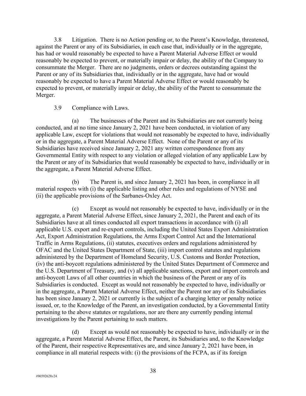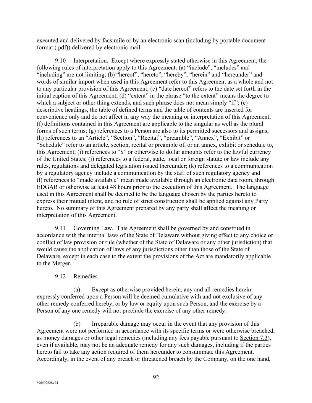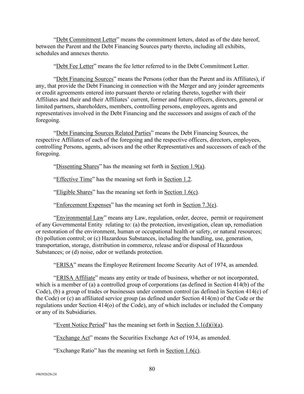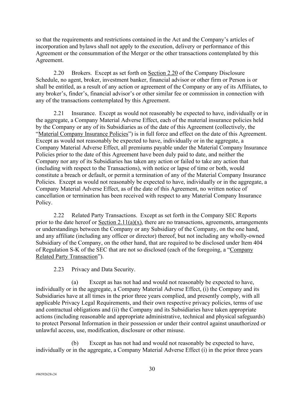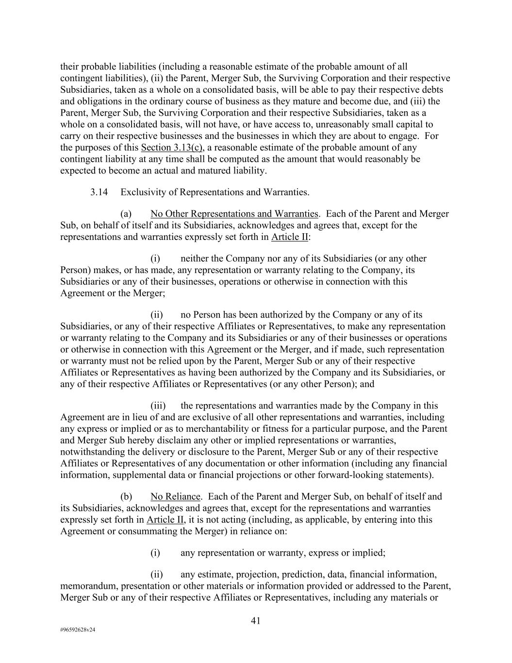 The foregoing description of the Merger Agreement and the transactions contemplated thereby in this Current Report on Form 8-K is only a summary and does not purport to be complete and is qualified in its entirety by reference to the full text of the Merger Agreement, a copy of which is filed as Exhibit 2.1 hereof and incorporated by reference herein. Such description is not intended to provide any other factual information about the parties to the Merger Agreement or their respective subsidiaries and affiliates. The Merger Agreement contains representations and warranties by each of the parties to Merger Agreement, which were made only for purposes of that agreement and as of specified dates. The representations, warranties and covenants in the Merger Agreement were made solely for the benefit of the parties to the applicable agreement, are subject to limitations agreed upon by the contracting parties, including being qualified by confidential disclosures made for the purposes of allocating contractual risk between the parties to the Merger Agreement instead of establishing these matters as facts, as well as by information contained in each party’s periodic reports filed with the SEC, and may be subject to standards of materiality applicable to the contracting parties that may differ from those applicable to investors. Investors should not rely on the representations, warranties and covenants or any descriptions thereof as characterizations of the actual state of facts or condition of such parties or any of their respective subsidiaries or affiliates. Moreover, information concerning the subject matter of the representations, warranties and covenants may change after the date of the Merger Agreement, which subsequent information may or may not be fully reflected in the parties’ public disclosures.