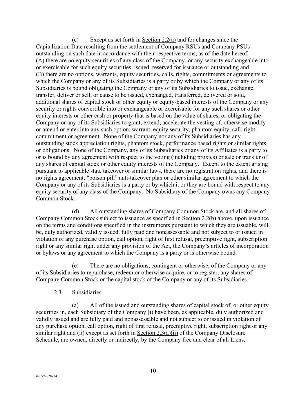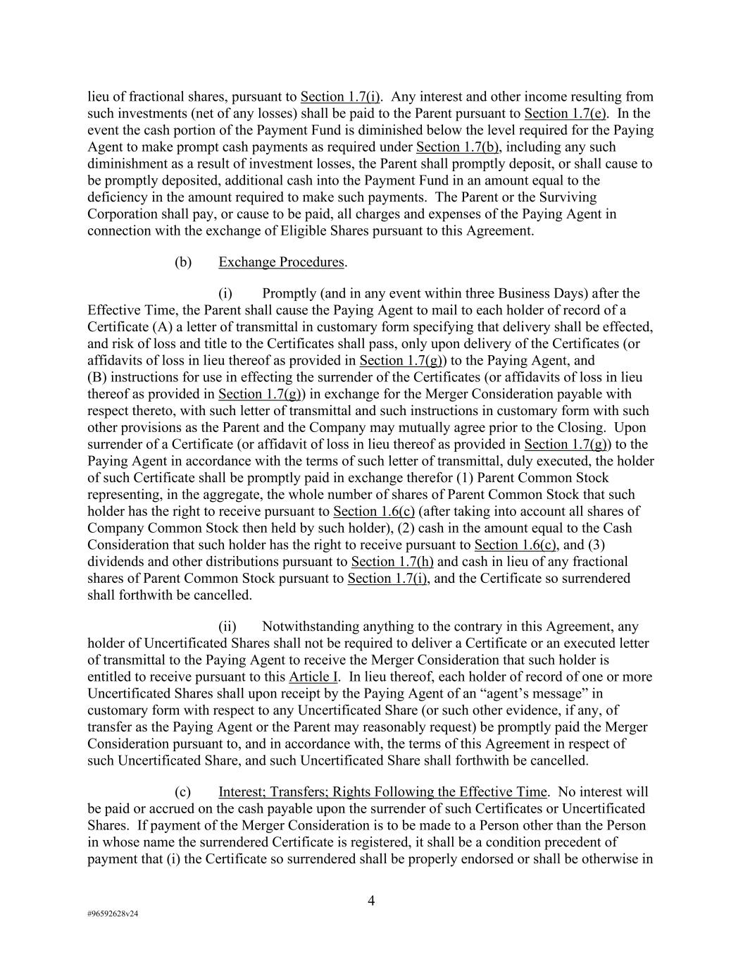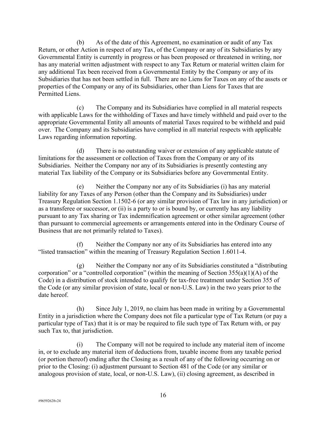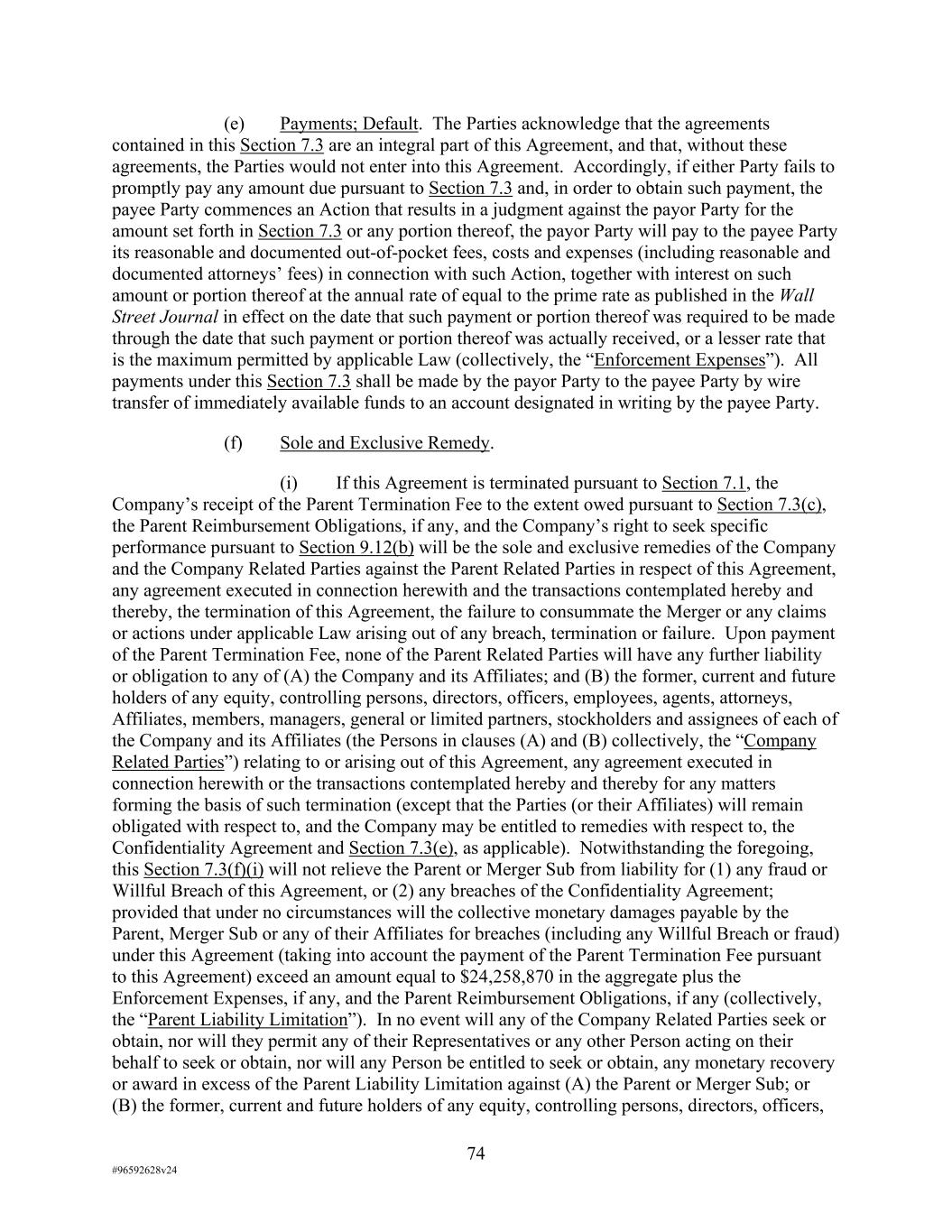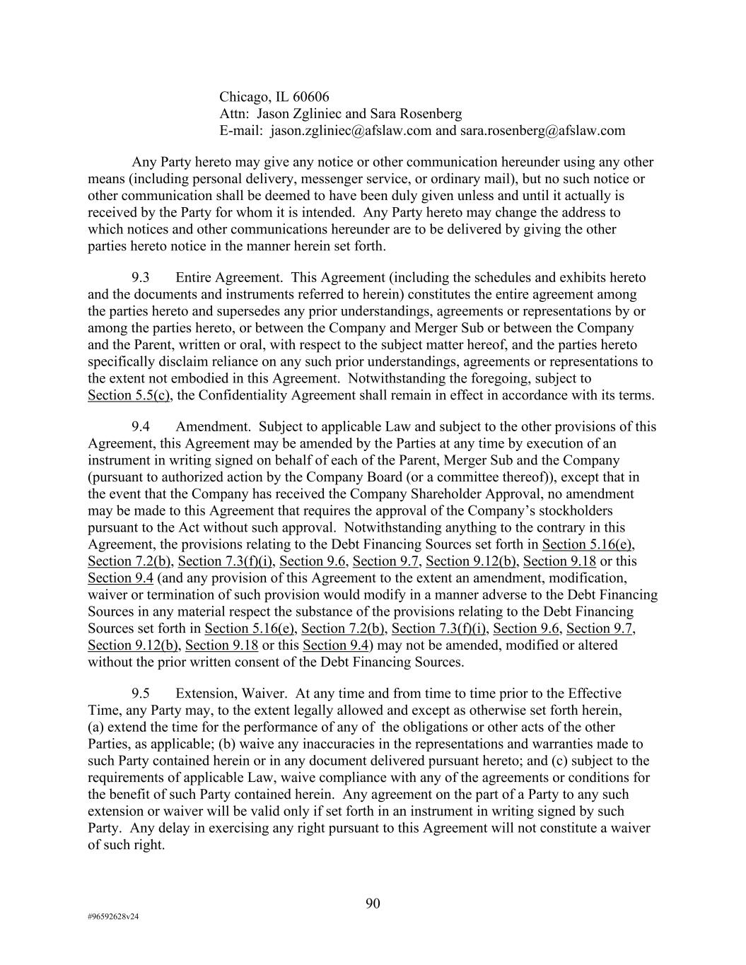 The foregoing description of the Merger Agreement and the transactions contemplated thereby in this Current Report on Form 8-K is only a summary and does not purport to be complete and is qualified in its entirety by reference to the full text of the Merger Agreement, a copy of which is filed as Exhibit 2.1 hereof and incorporated by reference herein. Such description is not intended to provide any other factual information about the parties to the Merger Agreement or their respective subsidiaries and affiliates. The Merger Agreement contains representations and warranties by each of the parties to Merger Agreement, which were made only for purposes of that agreement and as of specified dates. The representations, warranties and covenants in the Merger Agreement were made solely for the benefit of the parties to the applicable agreement, are subject to limitations agreed upon by the contracting parties, including being qualified by confidential disclosures made for the purposes of allocating contractual risk between the parties to the Merger Agreement instead of establishing these matters as facts, as well as by information contained in each party’s periodic reports filed with the SEC, and may be subject to standards of materiality applicable to the contracting parties that may differ from those applicable to investors. Investors should not rely on the representations, warranties and covenants or any descriptions thereof as characterizations of the actual state of facts or condition of such parties or any of their respective subsidiaries or affiliates. Moreover, information concerning the subject matter of the representations, warranties and covenants may change after the date of the Merger Agreement, which subsequent information may or may not be fully reflected in the parties’ public disclosures.