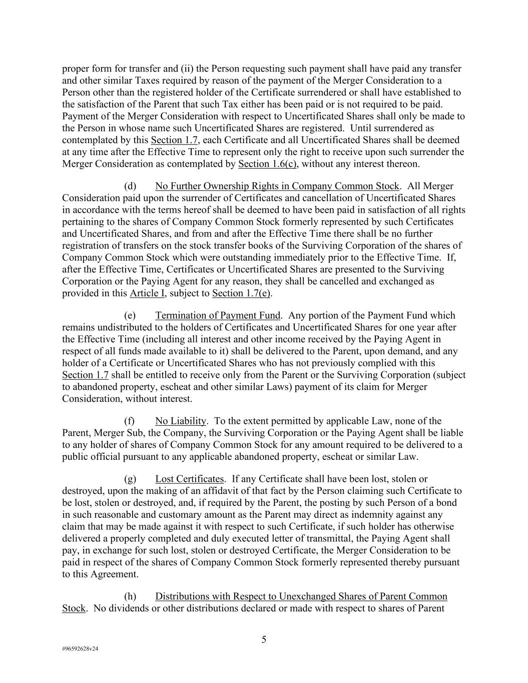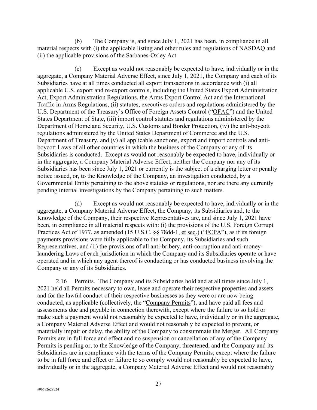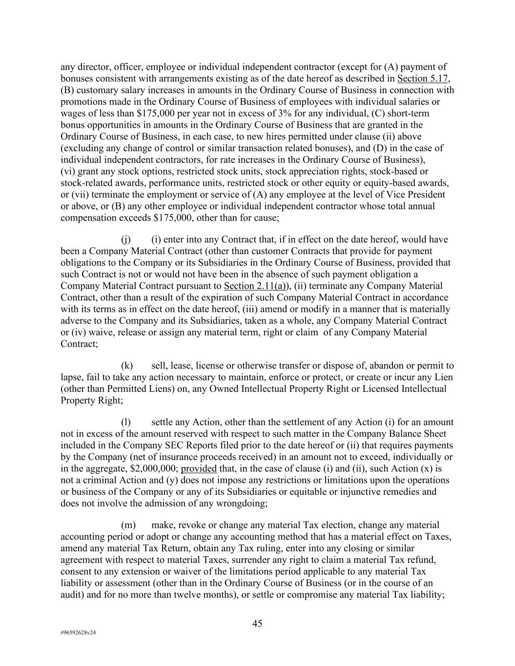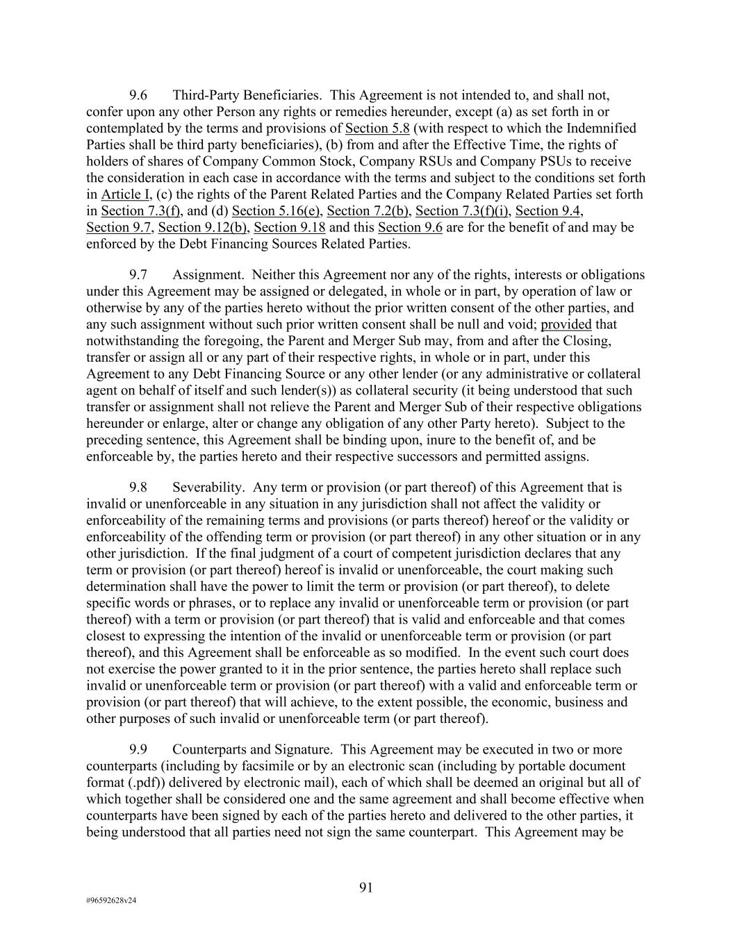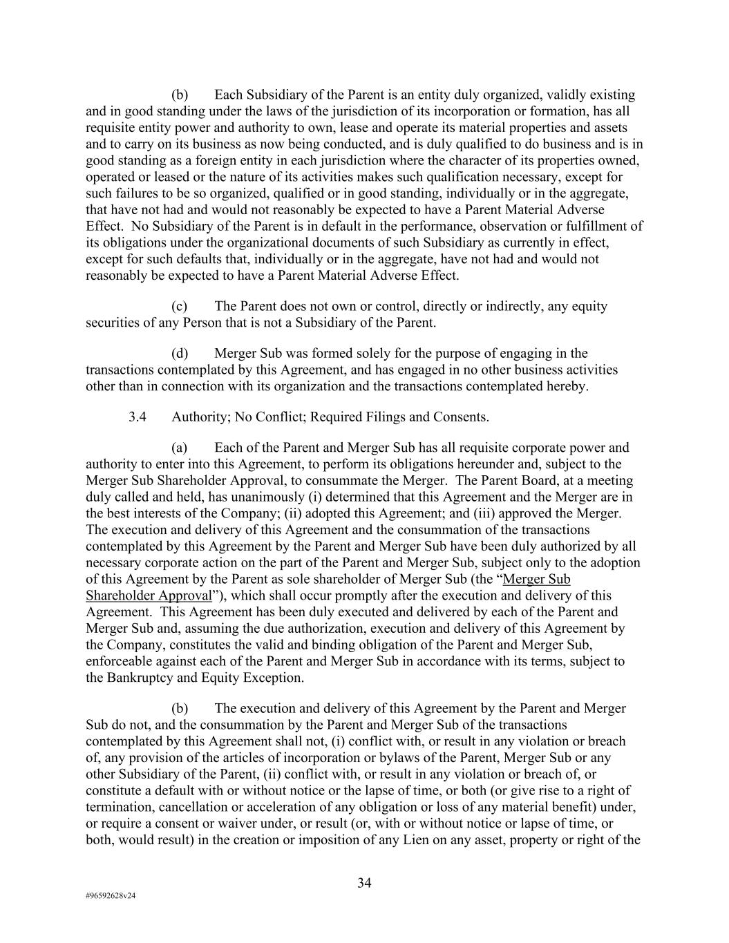 The foregoing description of the Merger Agreement and the transactions contemplated thereby in this Current Report on Form 8-K is only a summary and does not purport to be complete and is qualified in its entirety by reference to the full text of the Merger Agreement, a copy of which is filed as Exhibit 2.1 hereof and incorporated by reference herein. Such description is not intended to provide any other factual information about the parties to the Merger Agreement or their respective subsidiaries and affiliates. The Merger Agreement contains representations and warranties by each of the parties to Merger Agreement, which were made only for purposes of that agreement and as of specified dates. The representations, warranties and covenants in the Merger Agreement were made solely for the benefit of the parties to the applicable agreement, are subject to limitations agreed upon by the contracting parties, including being qualified by confidential disclosures made for the purposes of allocating contractual risk between the parties to the Merger Agreement instead of establishing these matters as facts, as well as by information contained in each party’s periodic reports filed with the SEC, and may be subject to standards of materiality applicable to the contracting parties that may differ from those applicable to investors. Investors should not rely on the representations, warranties and covenants or any descriptions thereof as characterizations of the actual state of facts or condition of such parties or any of their respective subsidiaries or affiliates. Moreover, information concerning the subject matter of the representations, warranties and covenants may change after the date of the Merger Agreement, which subsequent information may or may not be fully reflected in the parties’ public disclosures.