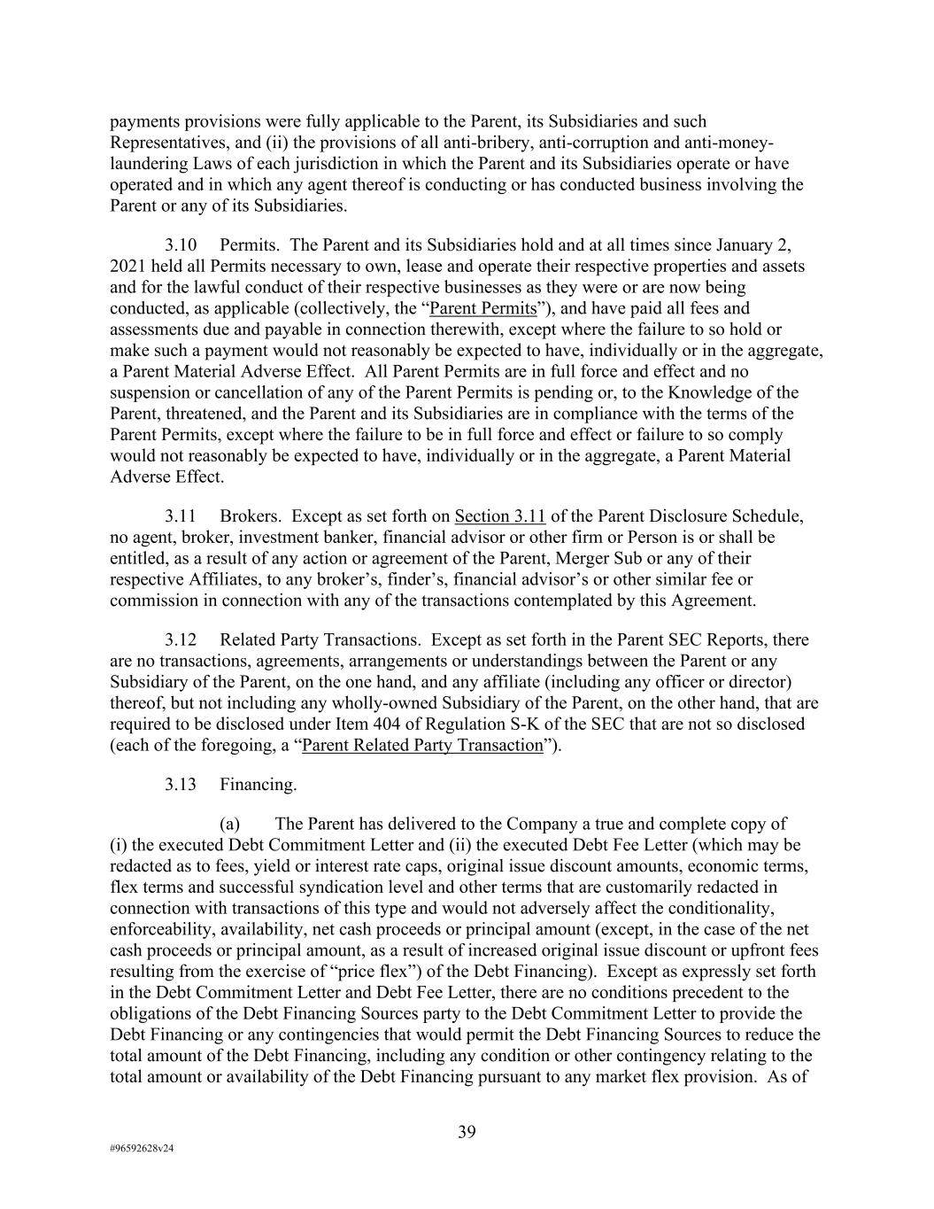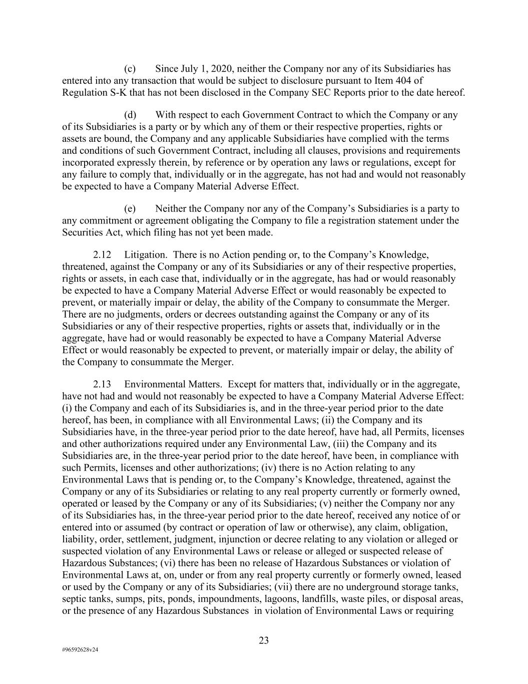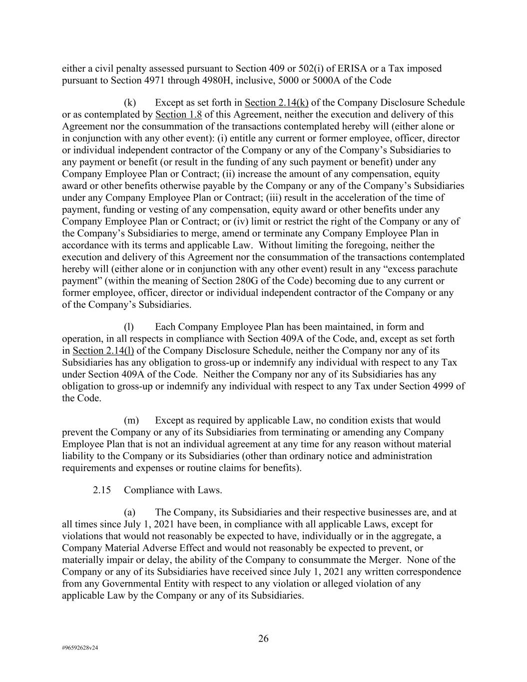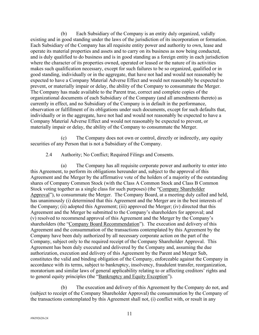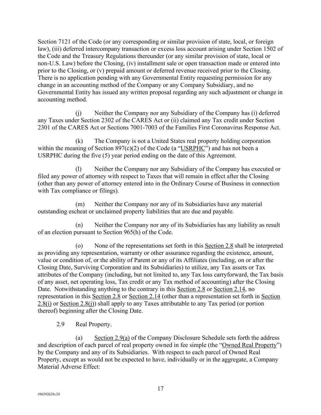 The foregoing description of the Merger Agreement and the transactions contemplated thereby in this Current Report on Form 8-K is only a summary and does not purport to be complete and is qualified in its entirety by reference to the full text of the Merger Agreement, a copy of which is filed as Exhibit 2.1 hereof and incorporated by reference herein. Such description is not intended to provide any other factual information about the parties to the Merger Agreement or their respective subsidiaries and affiliates. The Merger Agreement contains representations and warranties by each of the parties to Merger Agreement, which were made only for purposes of that agreement and as of specified dates. The representations, warranties and covenants in the Merger Agreement were made solely for the benefit of the parties to the applicable agreement, are subject to limitations agreed upon by the contracting parties, including being qualified by confidential disclosures made for the purposes of allocating contractual risk between the parties to the Merger Agreement instead of establishing these matters as facts, as well as by information contained in each party’s periodic reports filed with the SEC, and may be subject to standards of materiality applicable to the contracting parties that may differ from those applicable to investors. Investors should not rely on the representations, warranties and covenants or any descriptions thereof as characterizations of the actual state of facts or condition of such parties or any of their respective subsidiaries or affiliates. Moreover, information concerning the subject matter of the representations, warranties and covenants may change after the date of the Merger Agreement, which subsequent information may or may not be fully reflected in the parties’ public disclosures.