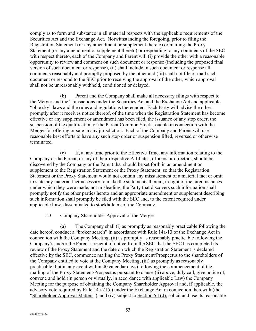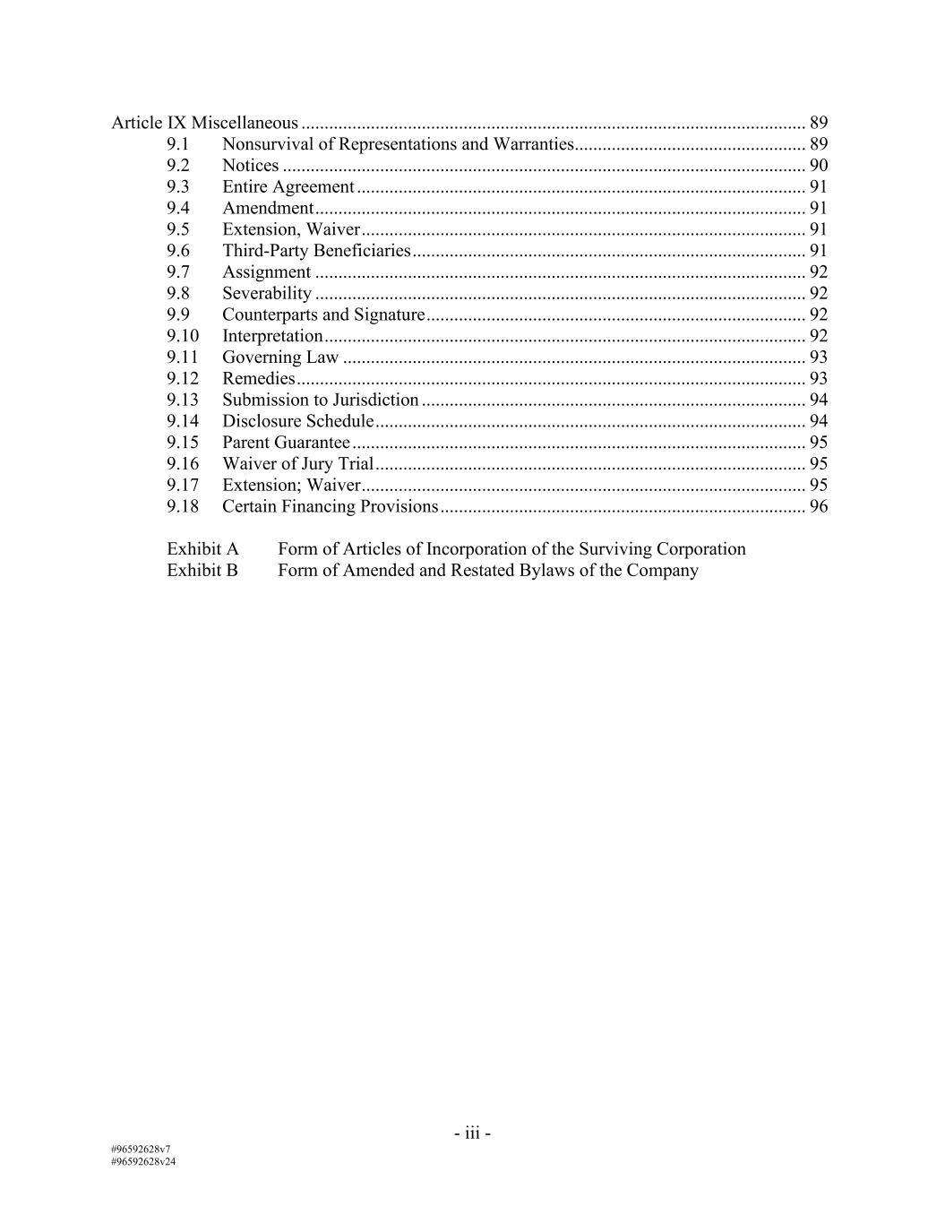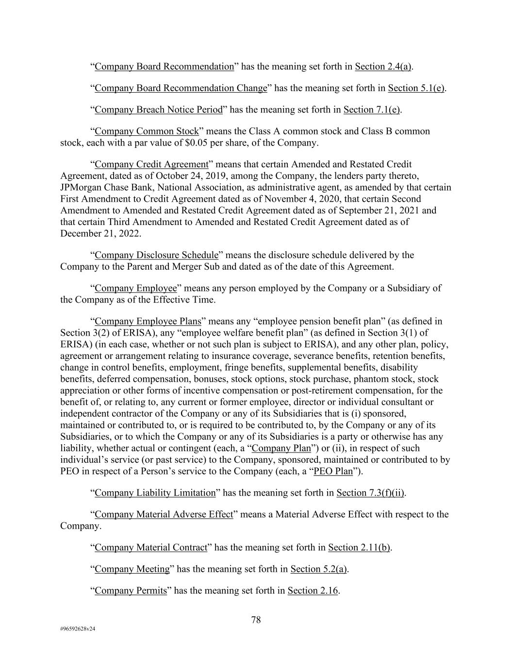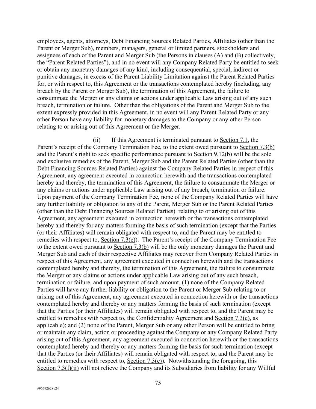 transactions contemplated under the Merger Agreement in connection with certain intervening events, or terminate the Merger Agreement in order to enter into an agreement providing for a Superior Proposal (as defined in the Merger Agreement), subject to the requirements and limitations set forth in the Merger Agreement.