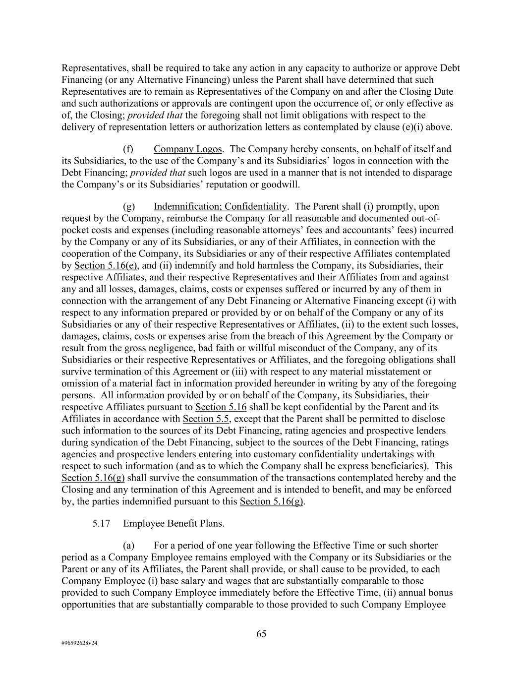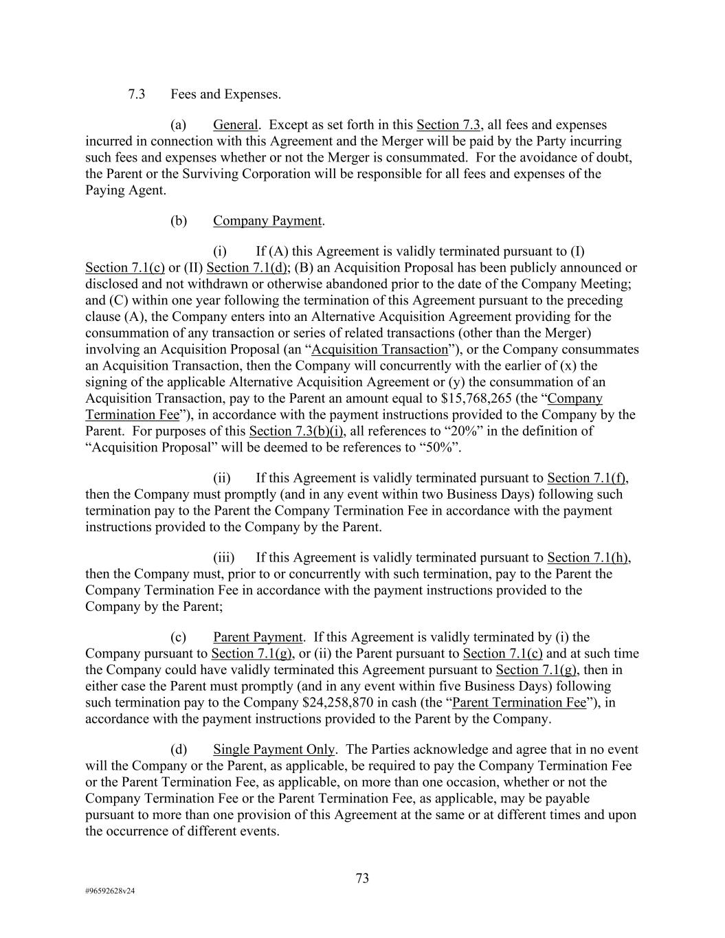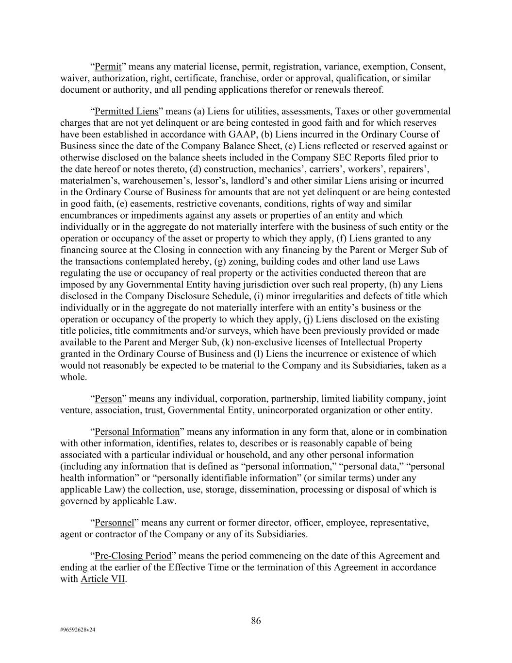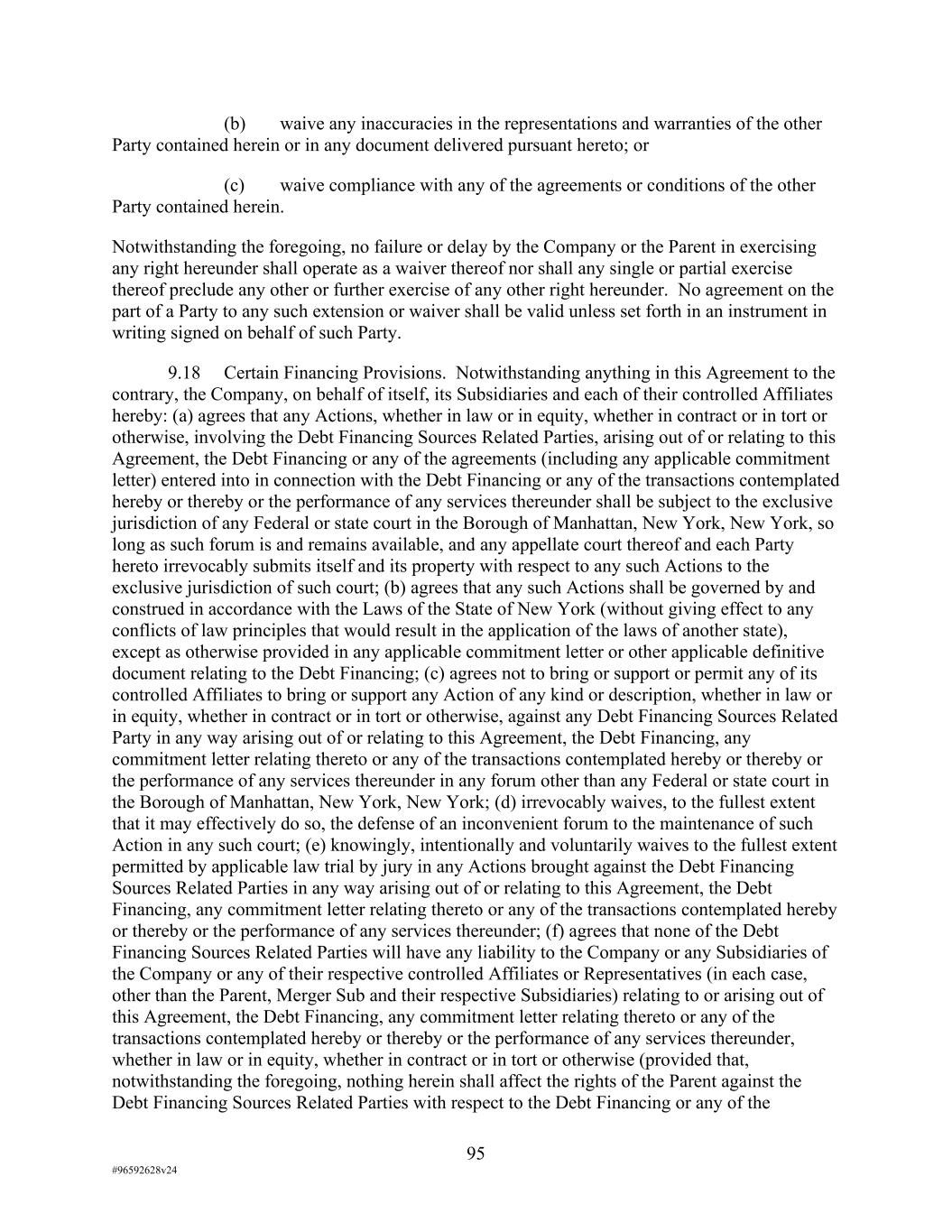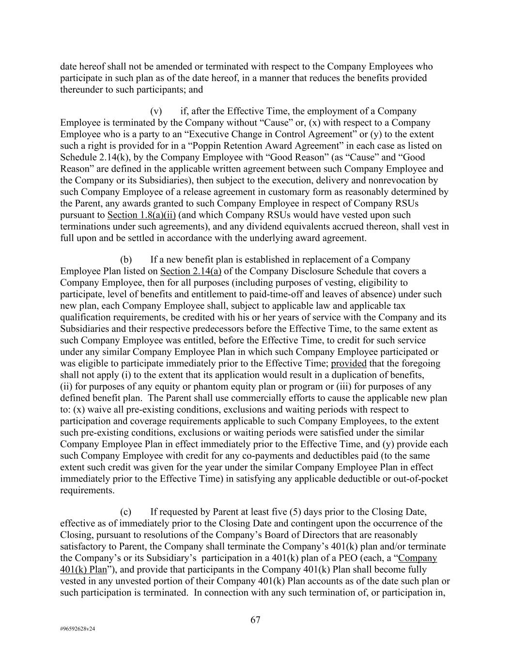 transactions contemplated under the Merger Agreement in connection with certain intervening events, or terminate the Merger Agreement in order to enter into an agreement providing for a Superior Proposal (as defined in the Merger Agreement), subject to the requirements and limitations set forth in the Merger Agreement.