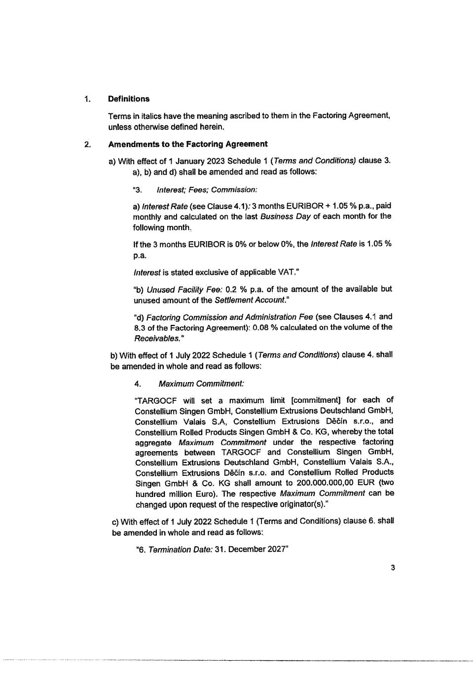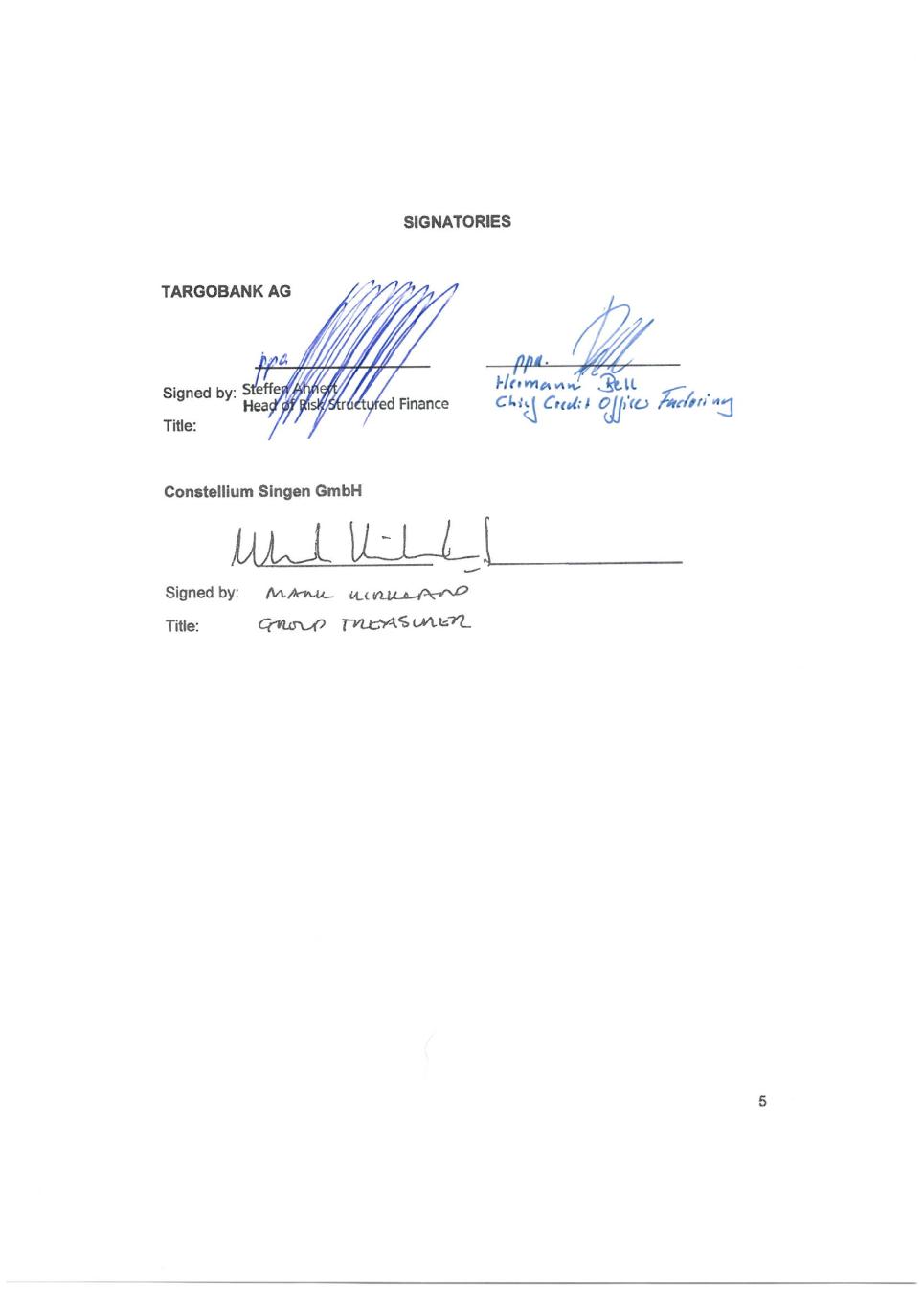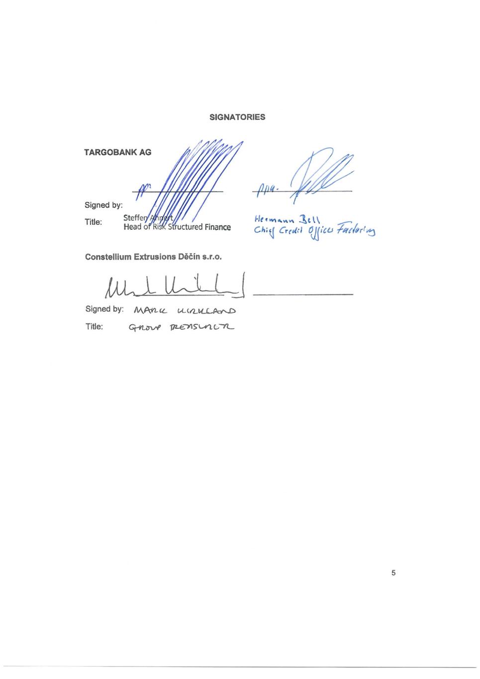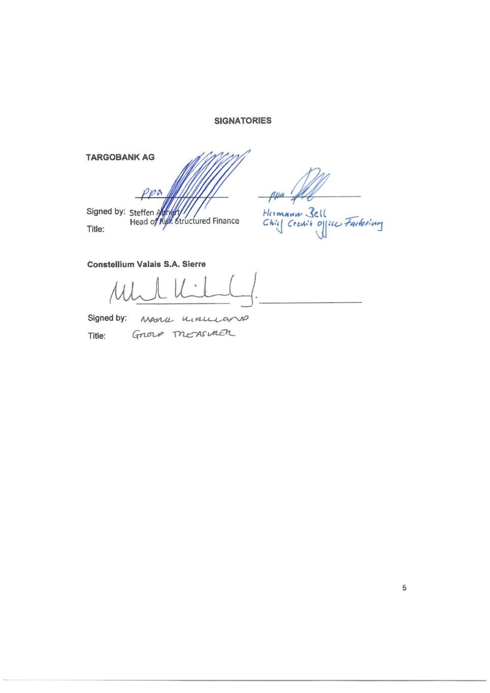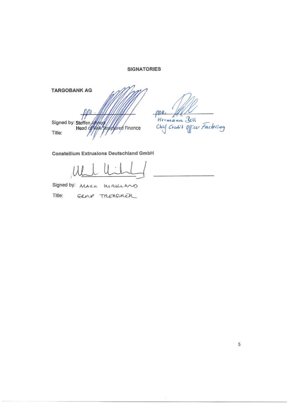 Paris 17846958.7 166 SIGNATORIES Made in Paris on 21 July 2022, In six (6) originals CONSTELLIUM INTERNATIONAL as Parent Company /s/ Arina Yemelyanova CONSTELLIUM NEUF BRISACH as Seller /s/ Arina Yemelyanova By: Arina Yemelyanova Title: Authorized signatory By: Arina Yemelyanova Title: Authorized signatory CONSTELLIUM ISSOIRE as Seller /s/ Arina Yemelyanova CONSTELLIUM EXTRUSIONS FRANCE as Seller /s/ Arina Yemelyanova By: Arina Yemelyanova Title: Authorized signatory By: Arina Yemelyanova Title: Authorized signatory CONSTELLIUM SWITZERLAND AG as Sellers’ Agent /s/ Arina Yemelyanova FACTOFRANCE as Factor /s/ Nicolas Morgant By: Arina Yemelyanova Title: Authorized signatory By: Nicolas Morgant Title: Head of International