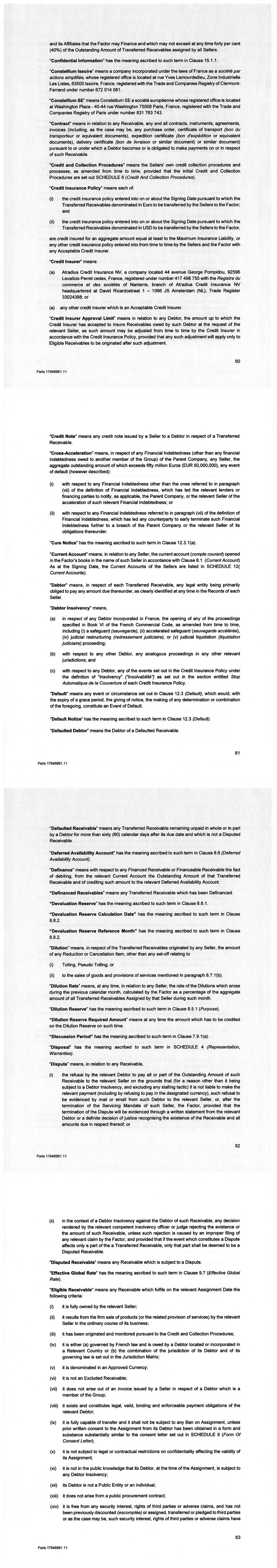 27 “Domestic Subsidiary” means any Subsidiary that is not a Foreign Subsidiary or a subsidiary listed on Schedule 1.01(a). “Early Opt-in Election” means, if the then-current Benchmark is USD LIBOR, the occurrence of: (a) a notification by the Administrative Agent to (or the request by the Borrowers to the Administrative Agent to notify) each of the other parties hereto that at least five currently outstanding Dollar-denominated syndicated credit facilities at such time contain (as a result of amendment or as originally executed) a SOFR-based rate (including SOFR, a term SOFR or any other rate based upon SOFR) as a benchmark rate (and such syndicated credit facilities are identified in such notice and are publicly available for review), and (b) the joint election by the Administrative Agent and the Borrowers to trigger a fallback from USD LIBOR and the provision by the Administrative Agent of written notice of such election to the Lenders. “EBITDA” means, with respect to any Person for any period, the Consolidated Net Income of such Person and its Subsidiaries for such period plus, without duplication, to the extent the same was deducted in calculating Consolidated Net Income: (a) Consolidated Taxes; plus (b) Consolidated Interest Expense; plus (c) Consolidated Non-cash Charges; plus (d) business optimization expenses and other restructuring charges or expenses (which, for the avoidance of doubt, shall include, without limitation, the effect of inventory optimization programs, plant closures, facility consolidations, retention, severance, systems establishment costs, contract termination costs, future lease commitments and excess pension charges); provided that the aggregate amount of business optimization expenses and other restructuring charges or expenses added pursuant to this clause (4) shall not exceed the greater of (i) €20.0 million and (ii) 10% of EBITDA for such period; minus, without duplication, (e) non-cash items increasing Consolidated Net Income for such period (excluding the recognition of deferred revenue or any items which represent the reversal of any accrual of, or cash reserve for, anticipated cash charges in any prior period and any items for which cash was received in a prior period). “EEA Financial Institution” means (a) any institution established in any EEA Member Country which is subject to the supervision of an EEA Resolution Authority, (b) any entity established in an EEA Member Country which is a parent of an institution described in clause (a) of this definition, or (c) any institution established in an EEA Member Country which is a subsidiary of an institution described in clauses (a) or (b) of this definition and is subject to consolidated supervision with its parent. “EEA Member Country” means any of the member states of the European Union, Iceland, Liechtenstein, and Norway. 28 “EEA Resolution Authority” means any public administrative authority or any person entrusted with public administrative authority of any EEA Member Country (including any delegee) having responsibility for the resolution of any EEA Financial Institution. “Effective Date” means the date this Agreement becomes effective in accordance with Section 10.11. “Eligible Accounts” means all Accounts of each Borrower reflected in the most recent Borrowing Base Certificate (but, with respect to each such Account, solely to the extent of the unpaid portion of the obligations stated on the respective Account invoices issued to a customer of such Borrower with respect to inventory sold and shipped or services performed in the ordinary course of business, in each case net of any credits, rebates or offsets owed by such Borrower to the respective customer, and any unapplied cash), except any Account with respect to which any of the exclusionary criteria set forth below applies: (a) Accounts of Account Debtors set forth on Schedule 1.01(h); (b) with respect to which any of the representations, warranties, covenants, and agreements contained in Section 4.05 of the Collateral Agreement are not or have ceased to be correct or have been breached; (c) with respect to which Account (or any other Account due from such Account Debtor), in whole or in part, a check, promissory note, draft, trade acceptance, or other instrument for the payment of money has been received, presented for payment, and returned uncollected for any reason; (d) (i) as to which such Borrower is not able to bring suit or otherwise enforce its remedies against the Account Debtor through judicial process or (ii) which represents a progress billing; provided that for the purposes hereof, “progress billing” means any invoice for goods sold or leased or services rendered under a contract or agreement pursuant to which the Account Debtor’s obligation to pay such invoice is conditioned upon completion of any further performance under the contract or agreement or is subject to the equitable lien of a surety bond issuer; (e) with respect to which any one or more of the following events has occurred to the Account Debtor on such Account: (i) death or judicial declaration of incompetency of an Account Debtor who is an individual; (ii) the filing by or against the Account Debtor of a request or petition for liquidation, reorganization, arrangement, adjustment of debts, adjudication as a bankrupt, winding-up, or other relief under any Debtor Relief Law; (iii) the making of any general assignment by the Account Debtor for the benefit of creditors; (iv) the appointment of a receiver or trustee for the Account Debtor or for any of the assets of the Account Debtor, including, without limitation, the appointment of or taking possession by a “custodian”, as defined in the U.S. Bankruptcy Code; (v) the institution by or against the Account Debtor of any other type of insolvency proceeding (under the U.S. Bankruptcy Code, another Debtor Relief Law or otherwise) or of any formal or informal proceeding for the di