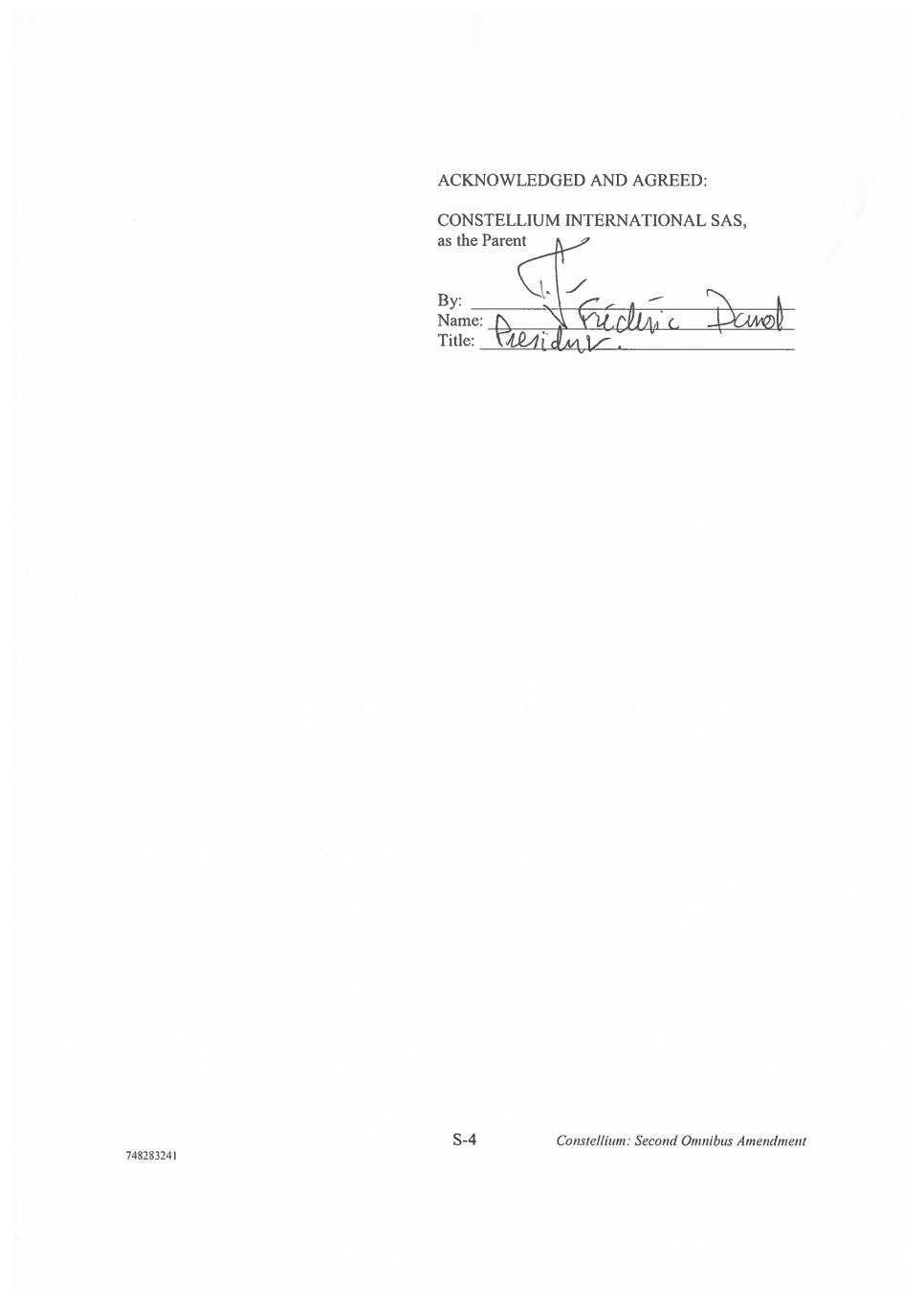 S-3 Constellium: Second Omnibus Amendment 748283241 DEUTSCHE BANK TRUST COMPANY AMERICAS, as a Purchaser By:______________________________________ Name:____________________________________ Title:_____________________________________ By:______________________________________ Name:____________________________________ Title:_____________________________________ DEUTSCHE BANK AG NEW YORK BRANCH, as a Purchaser By:______________________________________ Name:____________________________________ Title:_____________________________________ By:______________________________________ Name:____________________________________ Title:_____________________________________ DB’s Aggregate Commitment: $80,000,000.00 DB’s Sublimit Commitment for Crown Cork and Seal USA, Inc.: $70,000,000.00 DB’s Sublimit Commitment for Anheuser-Busch LLC: $10,000,000.00 DocuSign Envelope ID: 8740204E-36B1-4467-89DD-57613C42E775 Abdellah Agouzoul Abdellah Agouzoul Vice President Vice President Michael Arrizurieta Assistant Vice President Gaurav Mathur Director