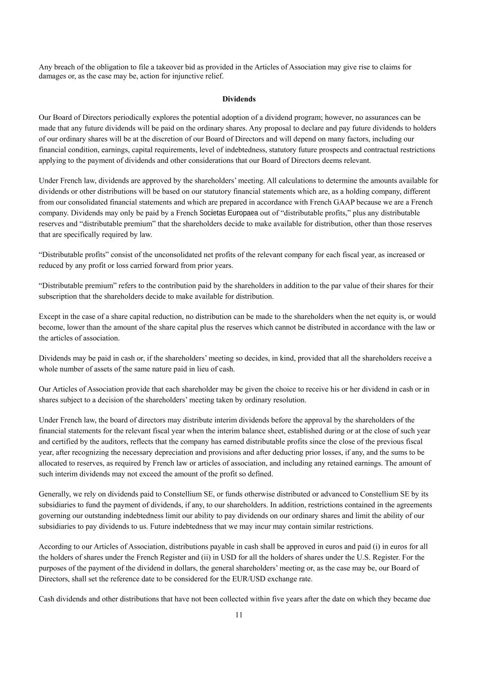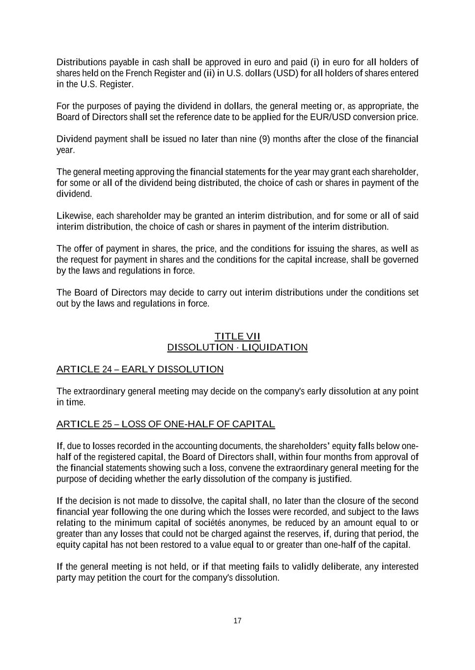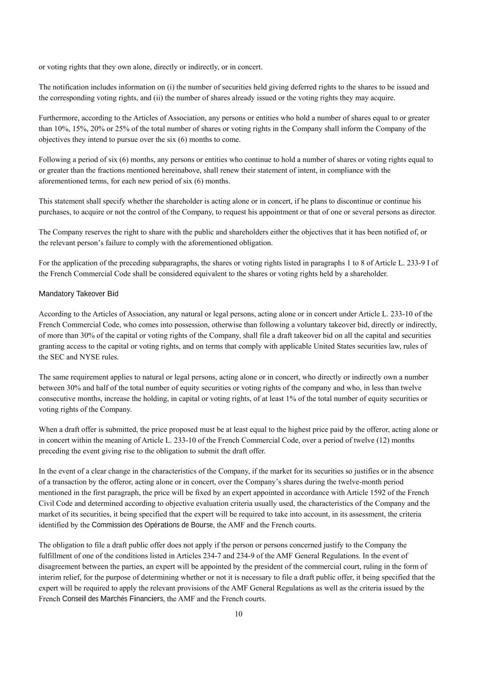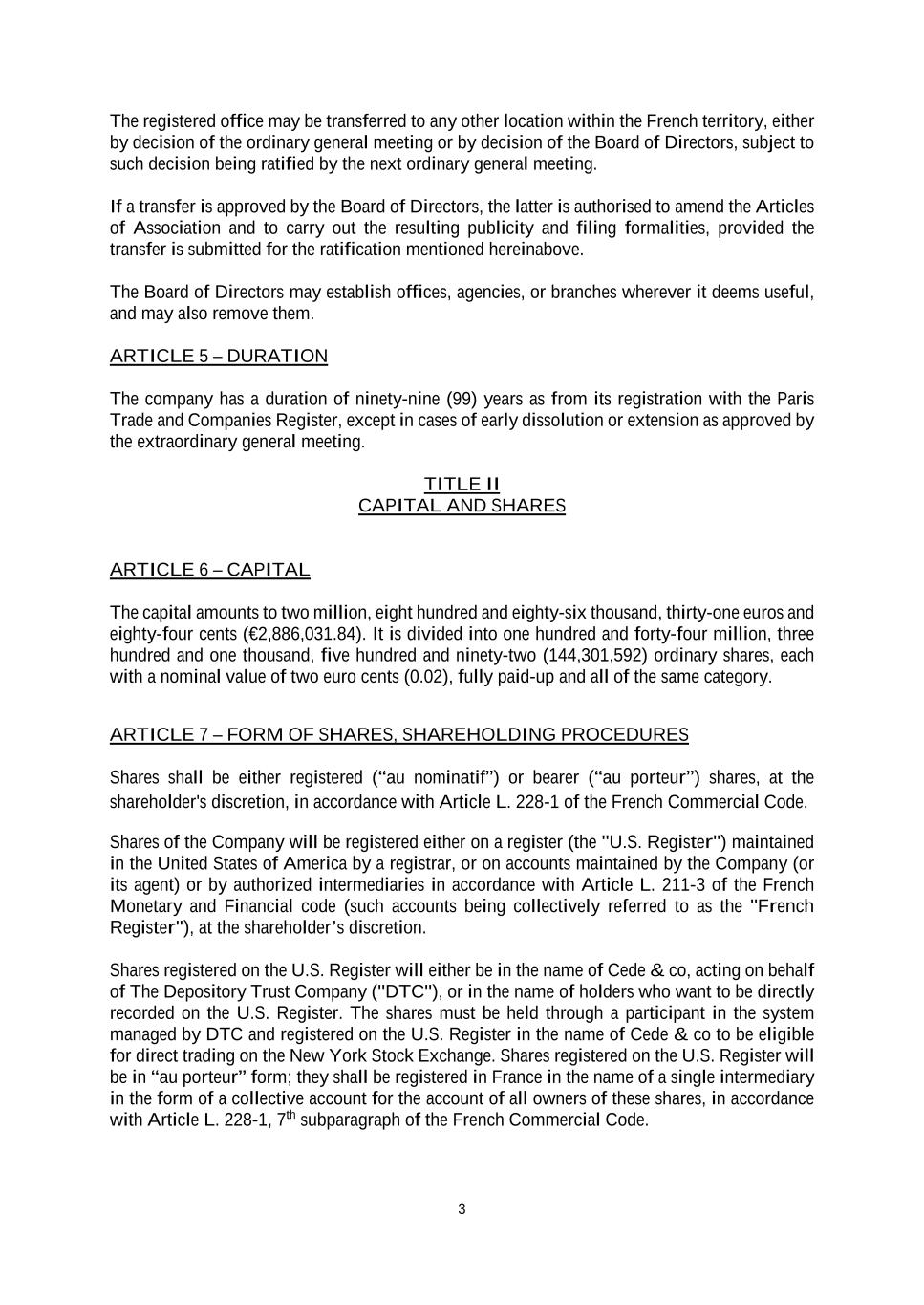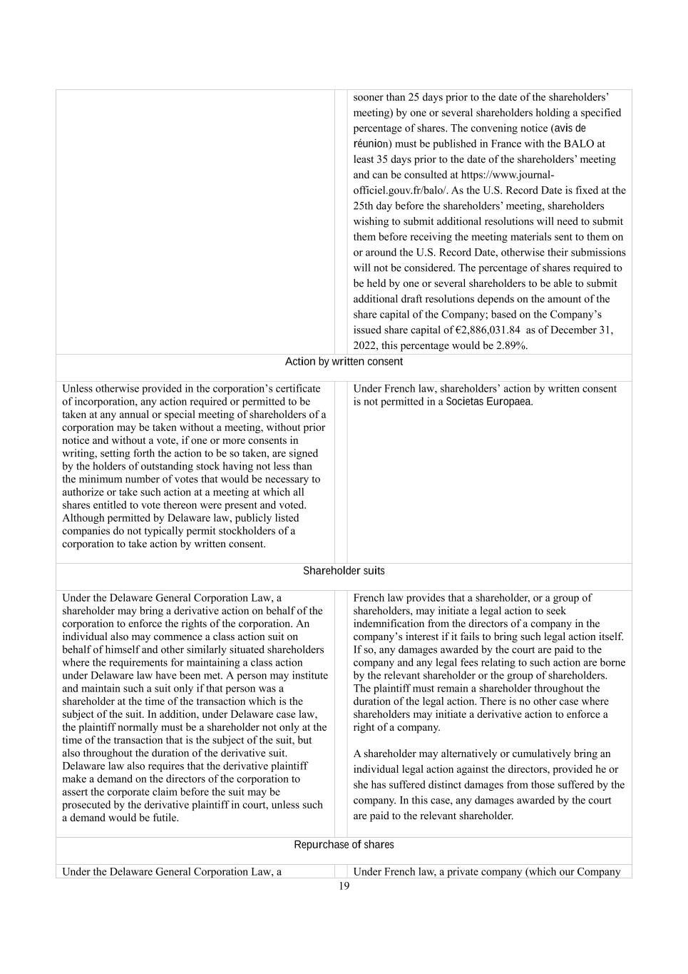 •Any inability of the Company to continue to benefit from French provisions applicable to registered intermediaries (“intermédiaires inscrits”) could adversely affect the rights of shareholders.
