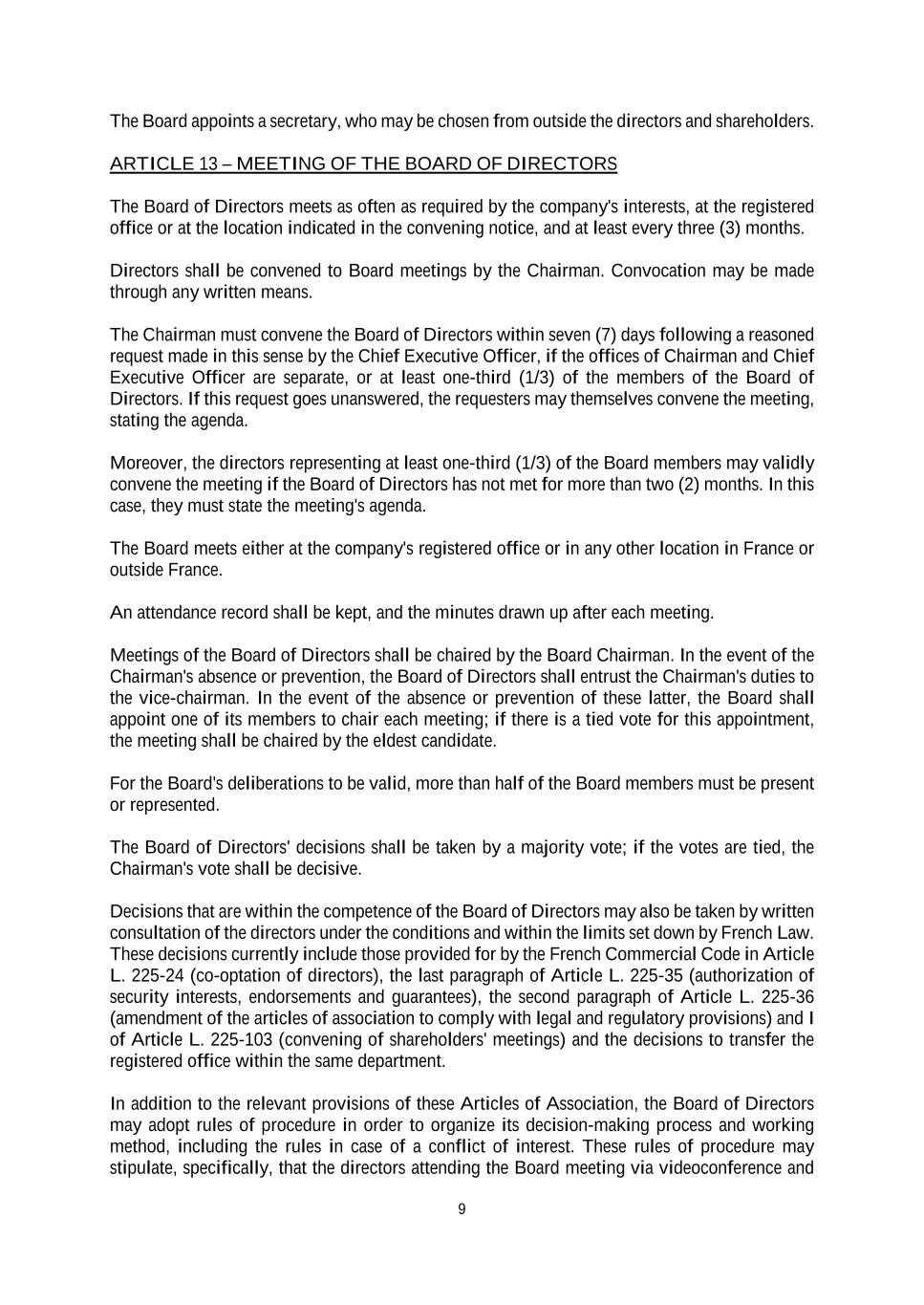 2022 Award Agreement 8 11. BREACH OF THESE TERMS AND CONDITIONS The Participant shall comply with the terms and conditions set forth in this Award Agreement and in the Award Letter, as well as any administrative instructions given by the Company regarding the same from time to time. If the Participant breaches the terms and conditions set forth in the Plan, this Award Agreement and/or in the Award Letter and/or any administrative instructions given by the Company, the Company may in its discretion, at any time prior to the Delivery Date, cancel the Grant of Units. 12. AMENDMENTS Amendments of this Award Agreement and of any Grant made hereunder shall be governed by Section 12 of the Plan. 13. RIGHTS OF PARTICIPANTS IN CORPORATE EVENTS (a) The Board may in its discretion choose to adjust the number of Shares underlying each Unit in accordance with applicable law in the event that it shall deem such adjustment to be necessary and equitable to protect the interests of the Participants following certain corporate transactions affecting the share capital of the Company. These events may include, and are not limited to, (i) capital reduction, (ii) modification of the means of sharing of profits, (iii) grants of free shares to all existing holders, (iv) a capital increase by incorporation of reserves, profits or issuance premiums, (v) distribution of reserves and (vi) any issuance of capital securities or financial instruments that give a right to the allocation of capital securities with preferential subscription rights reserved to shareholders. For the avoidance of doubt, the Company’s decision to cancel existing shares held by the Company, to grant stock or stock options to employees or to issue shares to selected investors prior to the settlement of the Units will not give rise to such adjustments. (b) Subject to Section 13(d) and Section 409A, should the Company, during the Vesting Period, resolve to merge with another existing company or merge with a company to be formed, or should the Company resolve to be demerged, the Board may determine, in its sole discretion, whether the Units may be settled prior to the merger or demerger. Any settlement will be within such period as resolved by the Board. The Board may determine, in its sole discretion, whether the Units should be converted into similar equity rights issued by the other company. In such circumstances, the Board shall determine the terms and the period applicable to the vesting of such new rights. (c) This Award Agreement and the Grants made hereunder shall not in any way infringe or limit the ability of the Company to register in or transfer to another member state in the European Economic Area or to register a transfer of its domicile into another member state. Such registration or transfer shall not have any impact on the rights and obligations of the Participants under this Award Agreement and in respect of any Grant, except to the extent resulting from a change in applicable law and/or as decided by the Board in its sole discretion. (d) In the event of a Change in Control occurring before the Vesting Date, in accordance with the provisions of Section 10(b) of the Plan, as well as the definition of Change in Control under Section 2: (i) any RSUs that have not previously vested or lapsed will be converted into a cash-denominated right equal in value to (A) the number of Shares underlying such RSU immediately prior to such Change in Control multiplied by (B) the