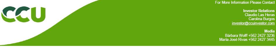 CCU is a multi-category beverage company with operations in Chile, Argentina, Bolivia, Colombia, Paraguay and Uruguay. CCU is one of the largest players in each one of the beverage categories in which it participates in Chile, including beer, soft drinks, mineral and bottled water, nectar, wine and pisco, among others. CCU is the second-largest brewer in Argentina and also participates in the cider, spirits and wine industries. In Uruguay and Paraguay, the Company is present in the beer, mineral and bottled water, soft drinks and nectar categories. In Bolivia, CCU participates in the beer, water, soft drinks and malt beverage categories. In Colombia, the Company participates in the beer and in the malt industry. The Company’s principal licensing, distribution and / or joint venture agreements include Heineken Brouwerijen B.V., PepsiCo Inc., Seven-up International, Schweppes Holdings Limited, Société des Produits Nestlé S.A., Pernod Ricard Chile S.A., Promarca S.A. (Watt’s), Red Bull Panamá S.A., Stokely Van Camp Inc., and Coors Brewing Company.