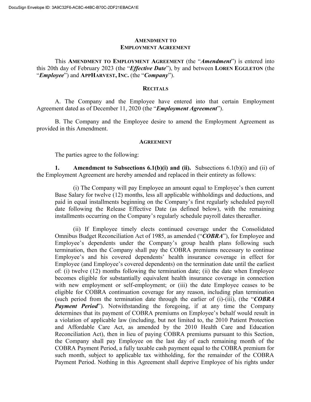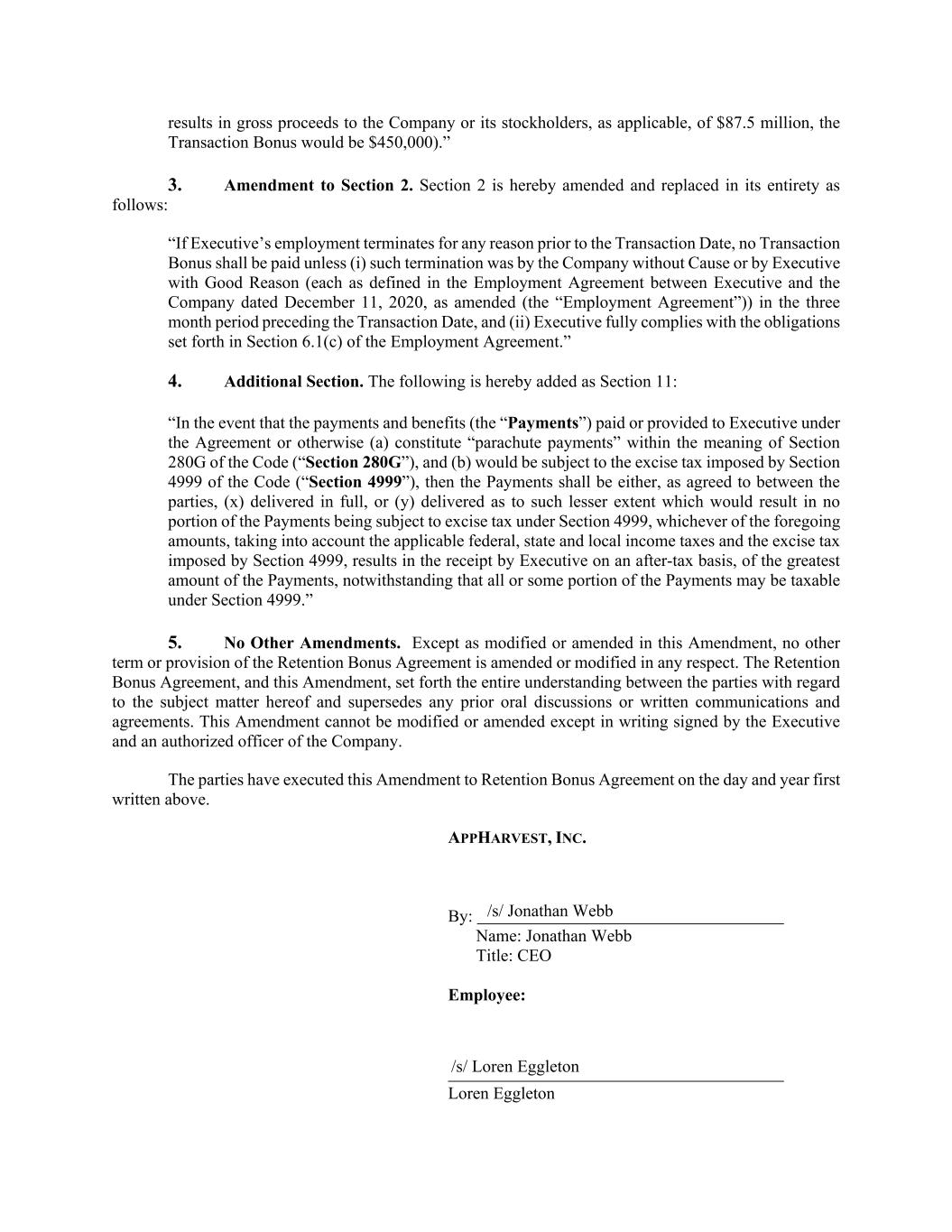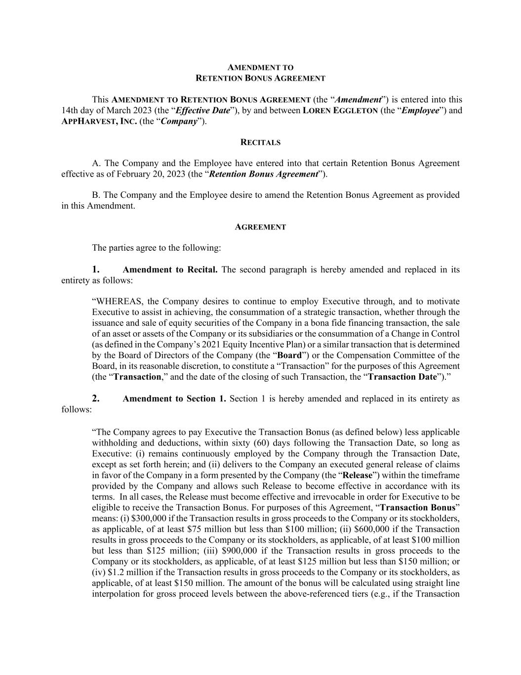 (4)Registration Statement (Form S-8 No. 333-255068) pertaining to the AppHarvest, Inc. 2018 Equity Incentive Plan, the AppHarvest, Inc. 2021 Equity Incentive Plan, and the AppHarvest, Inc. 2021 Employee Stock Purchase Plan;