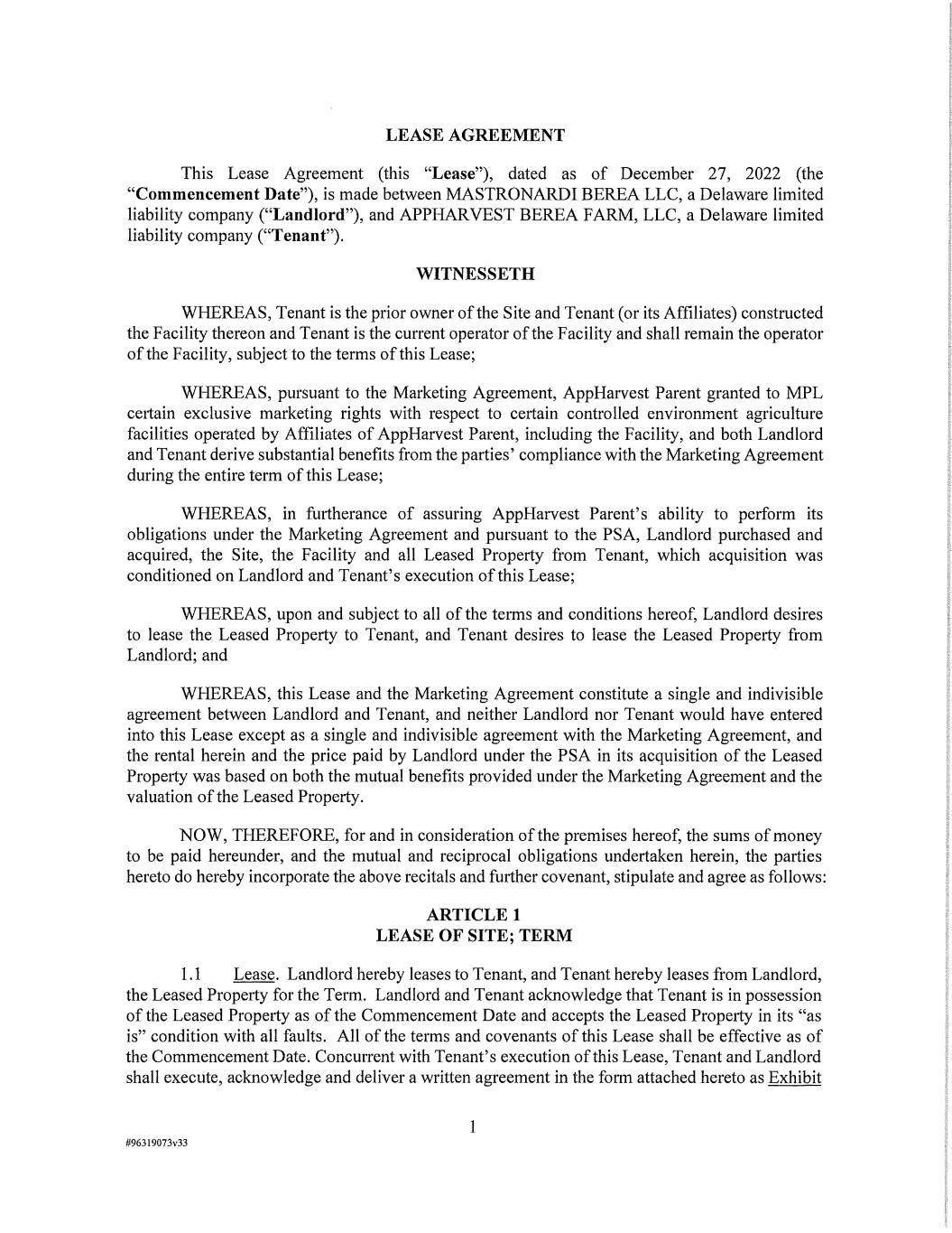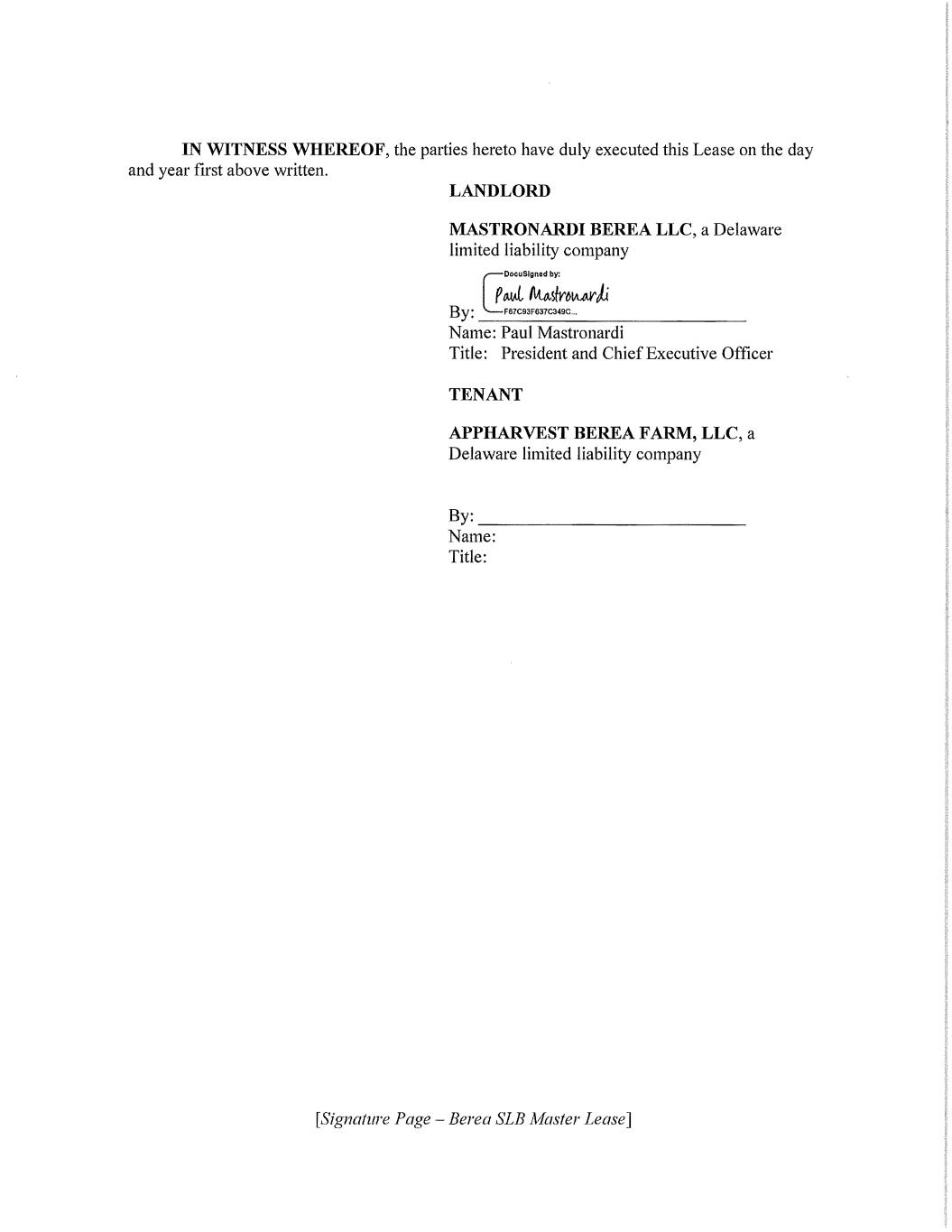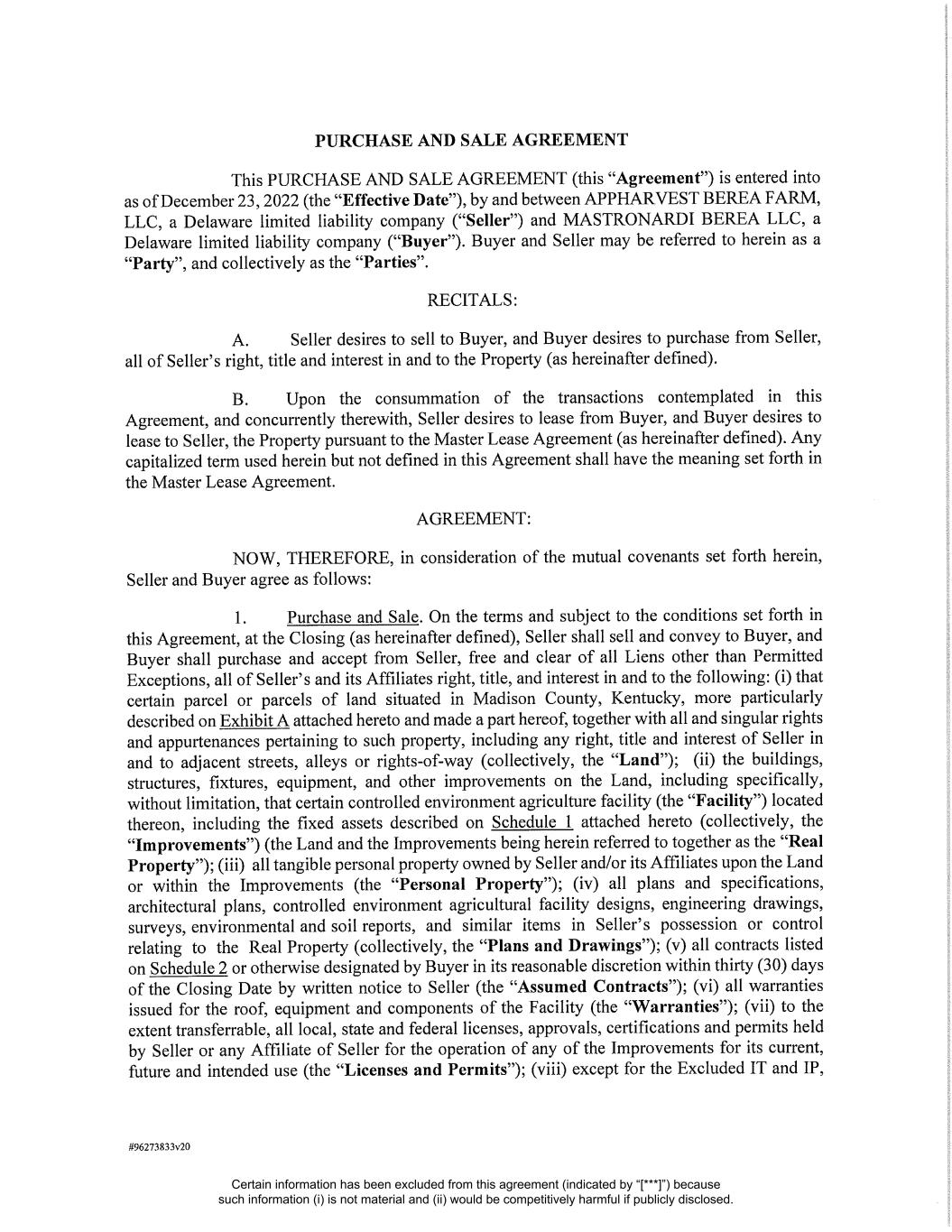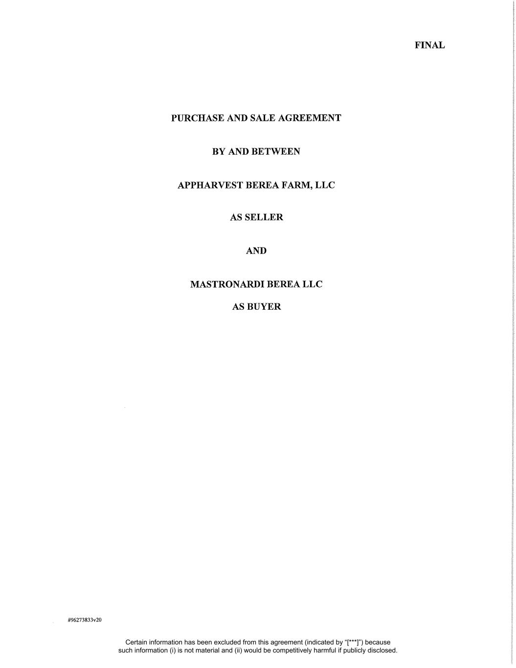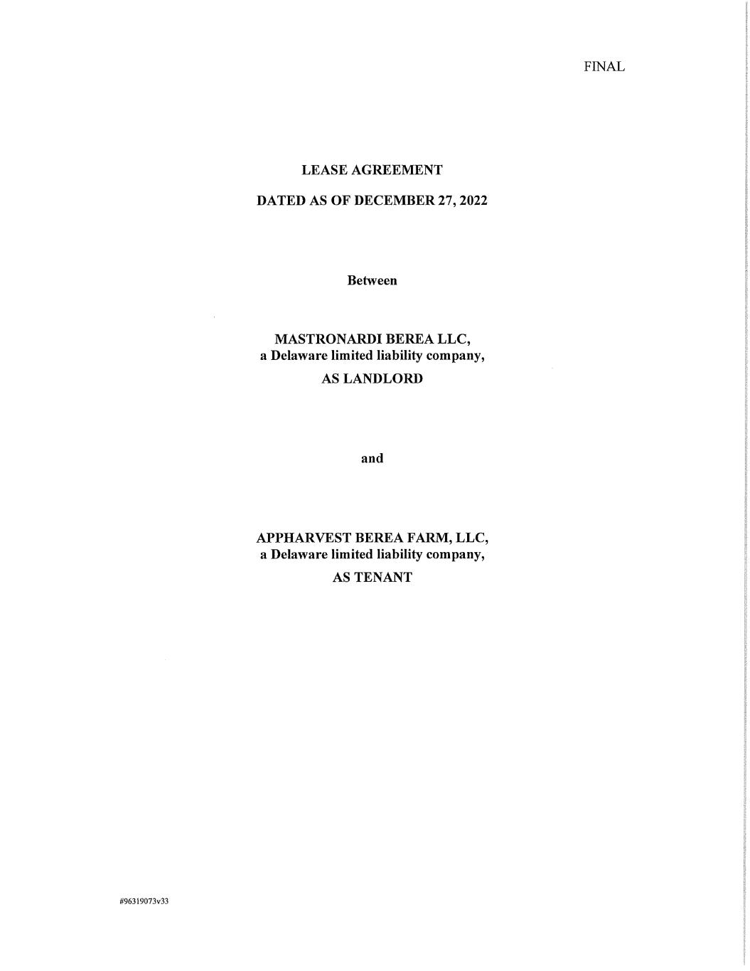 | APPHARVEST BEREA FARM, LLC, a Delaware limited liability company