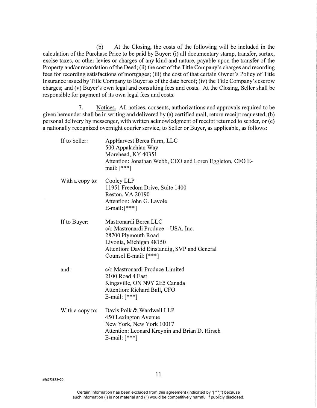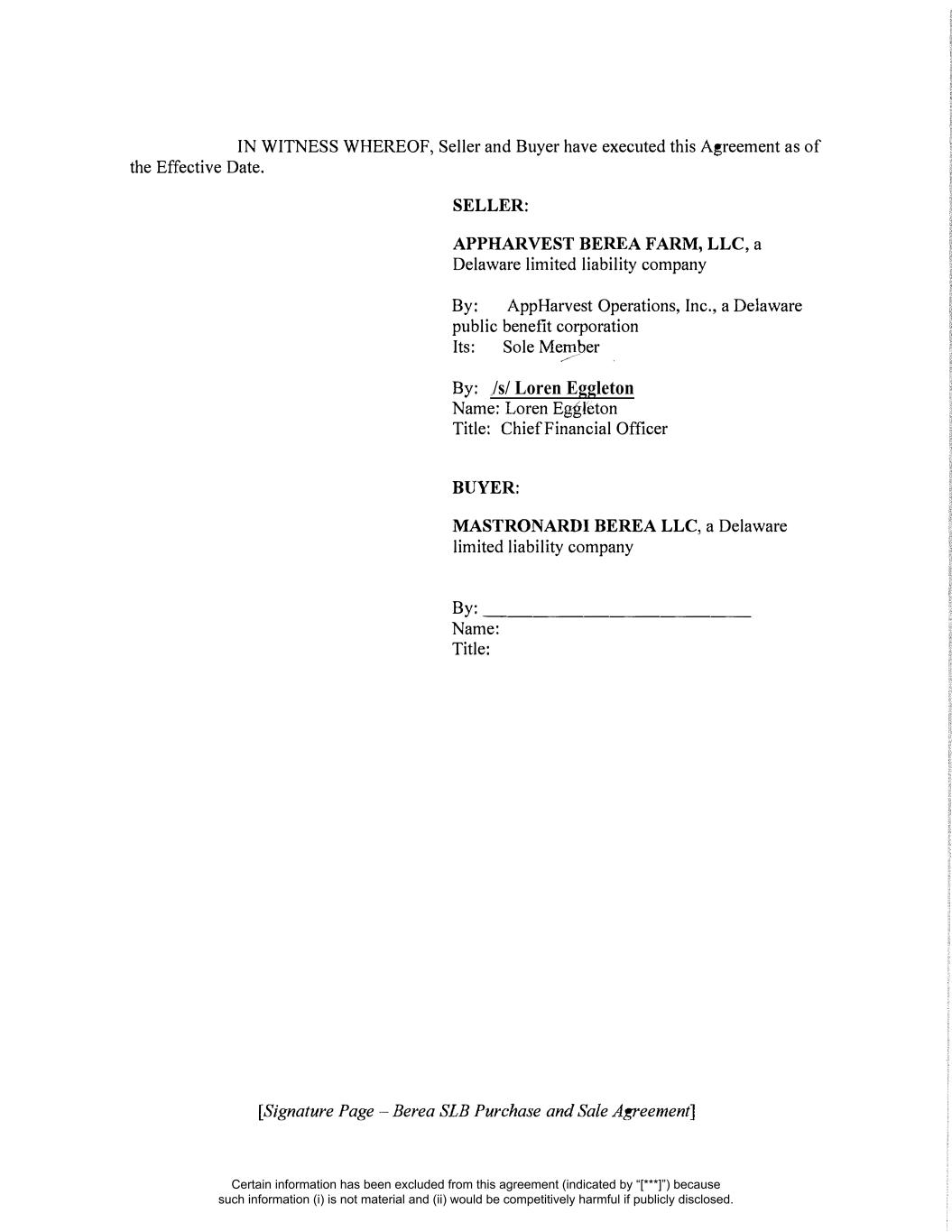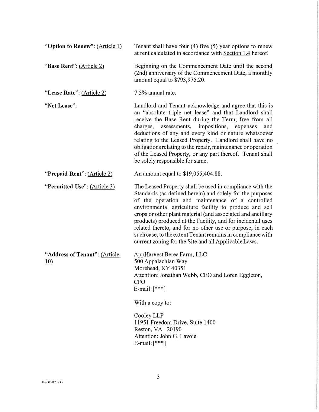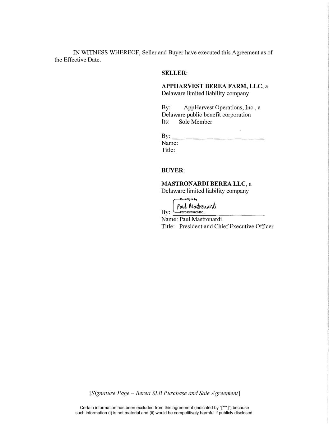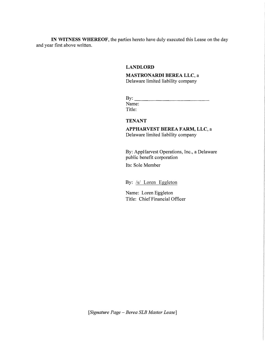 | APPHARVEST BEREA FARM, LLC, a Delaware limited liability company