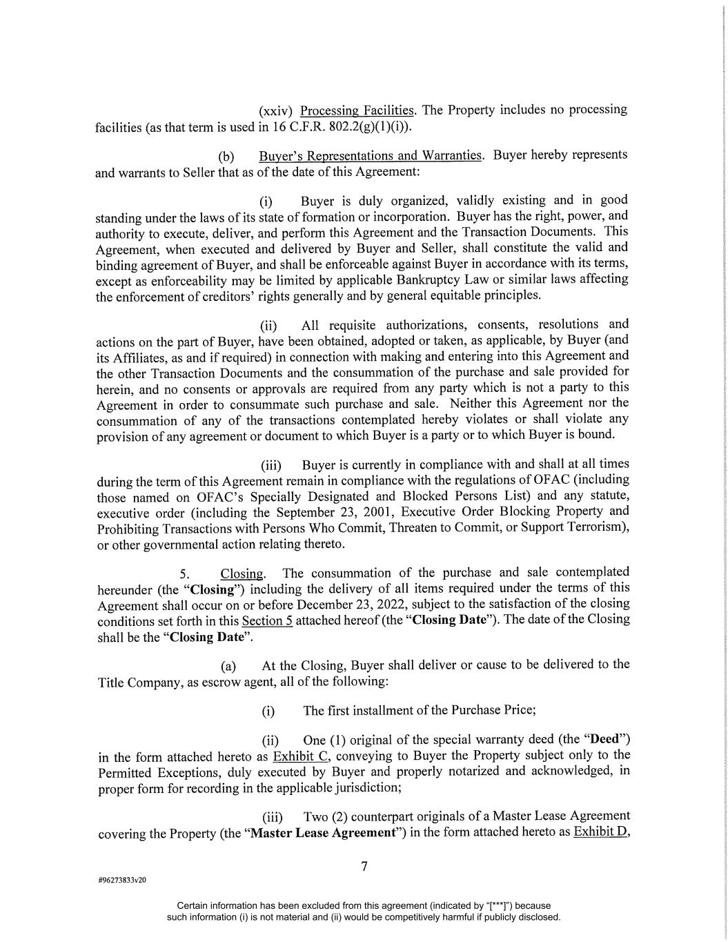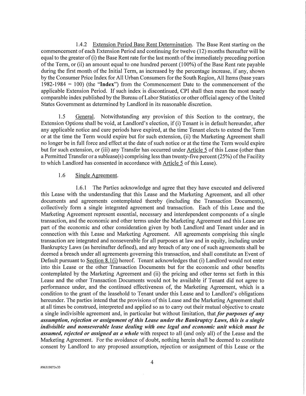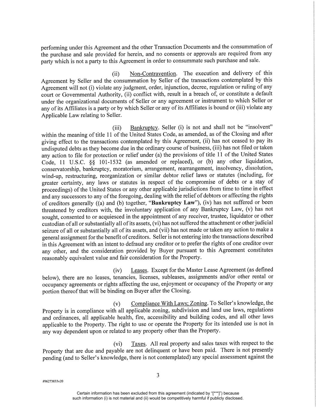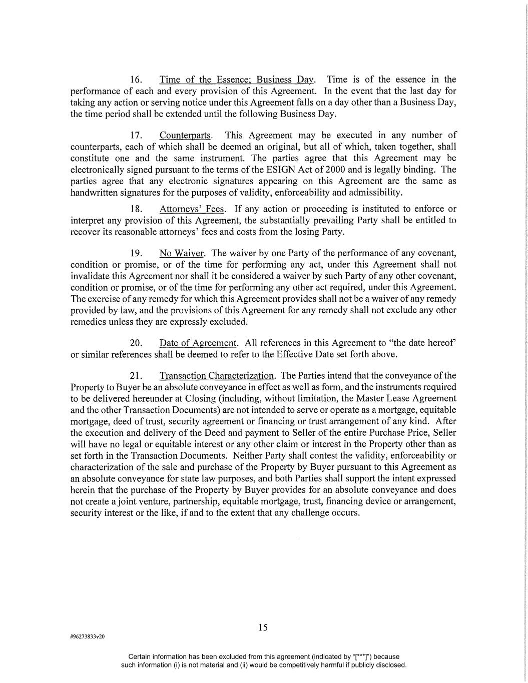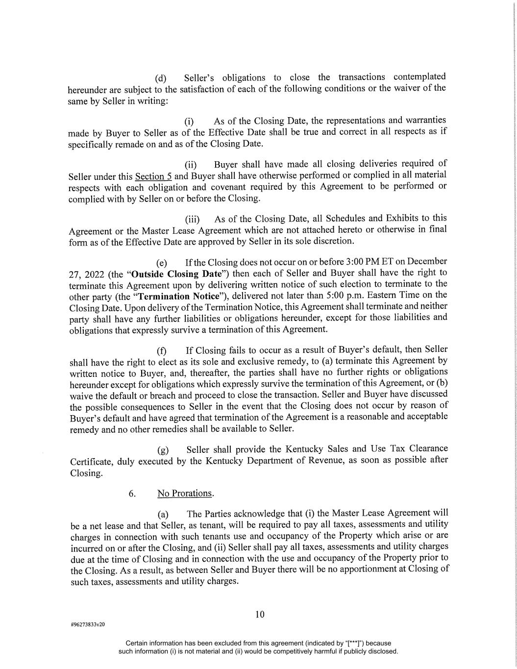 (e)Sale Leaseback. On or before November 19, 2022, Maker shall have agreed to the material terms for a Sale Leaseback transaction with Payee, its affiliate or another third party.