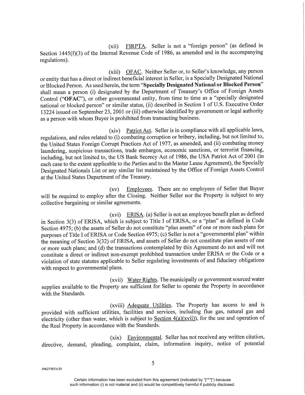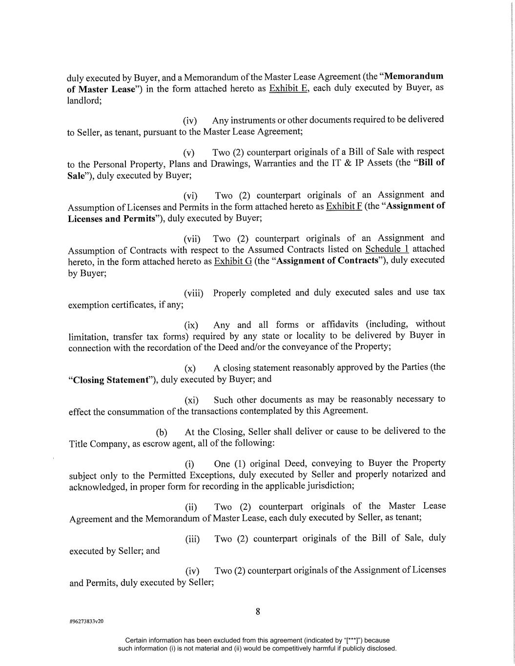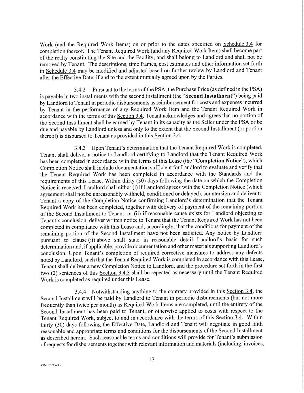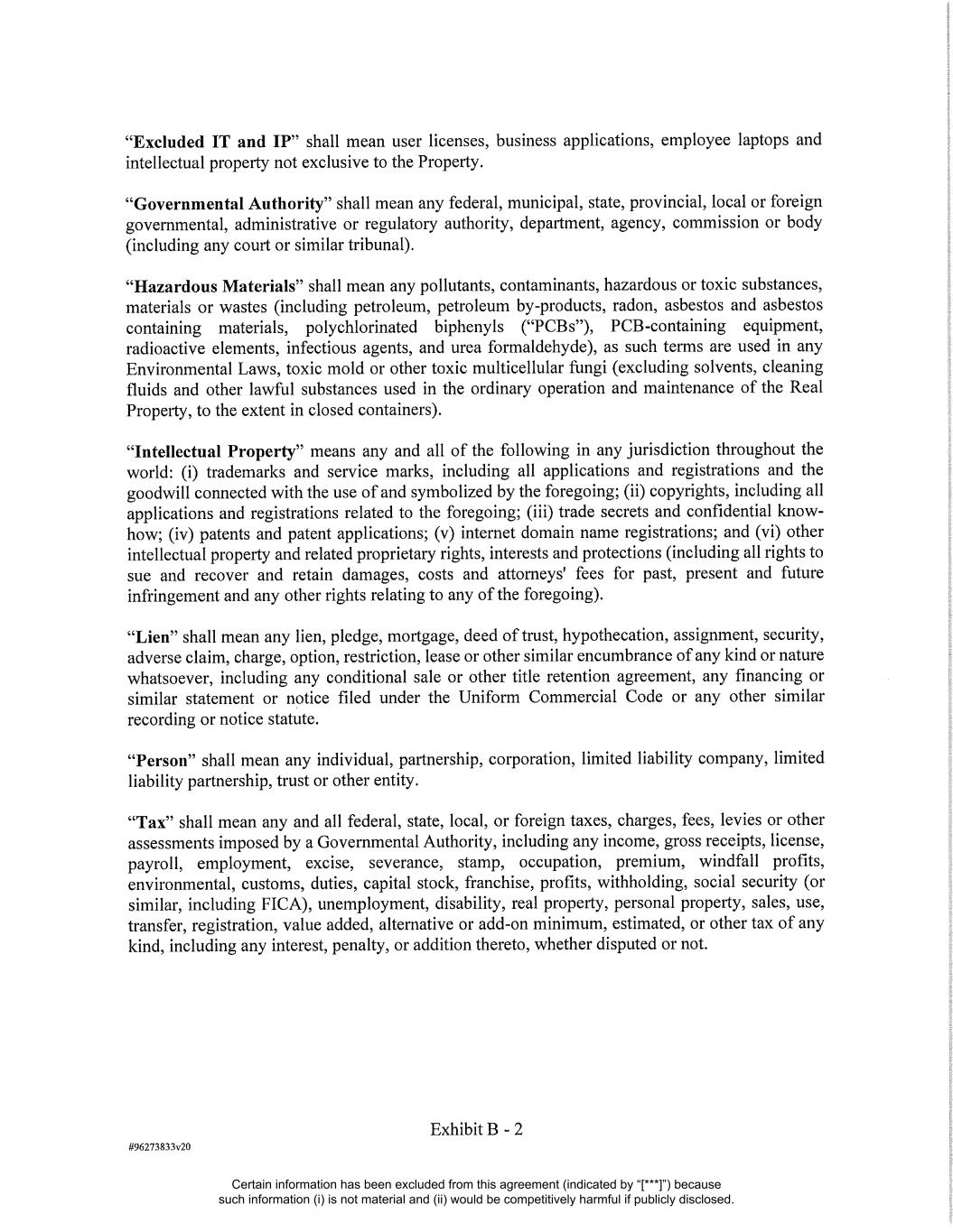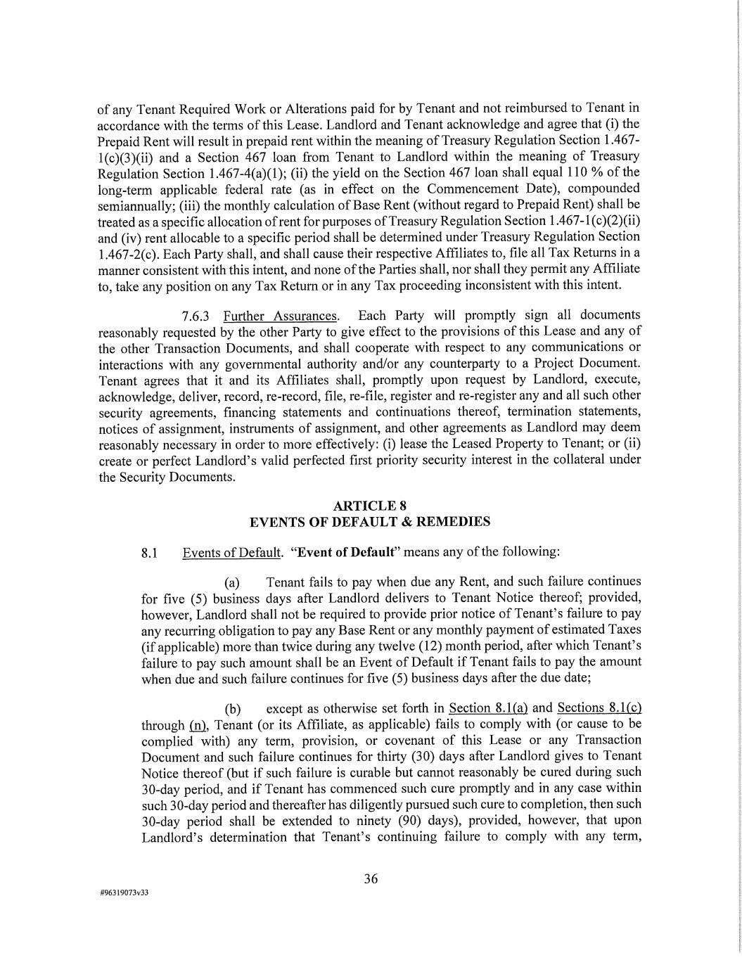 (e)Sale Leaseback. On or before November 19, 2022, Maker shall have agreed to the material terms for a Sale Leaseback transaction with Payee, its affiliate or another third party.