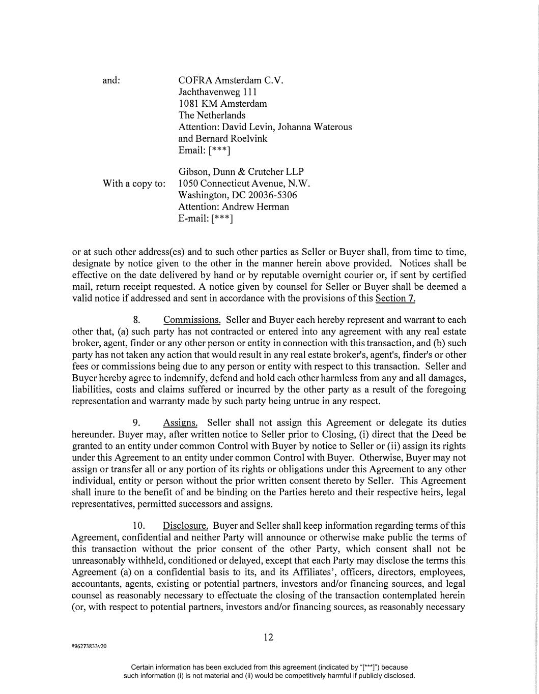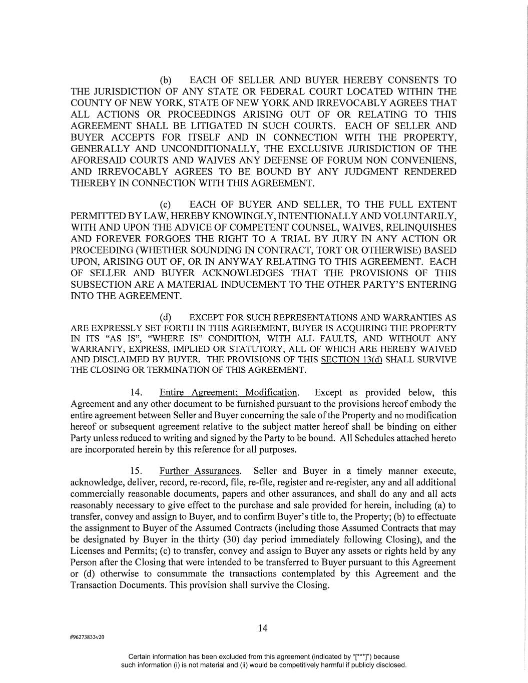 12.Press Releases. Neither Maker nor Payee shall issue any press release or similar public statement with respect to the transactions contemplated hereby or the other Loan Documents or the Sale Leaseback or EQ ROFR without the prior consent of the other party; provided, however, that no such consent shall be required if such press release is required pursuant to any regulations promulgated by the New York Stock Exchange or other public exchange for the sale and purchase of securities, provided that prior written notice shall be given to the other party of such press release and such press release shall not identify Payee or its affiliates.