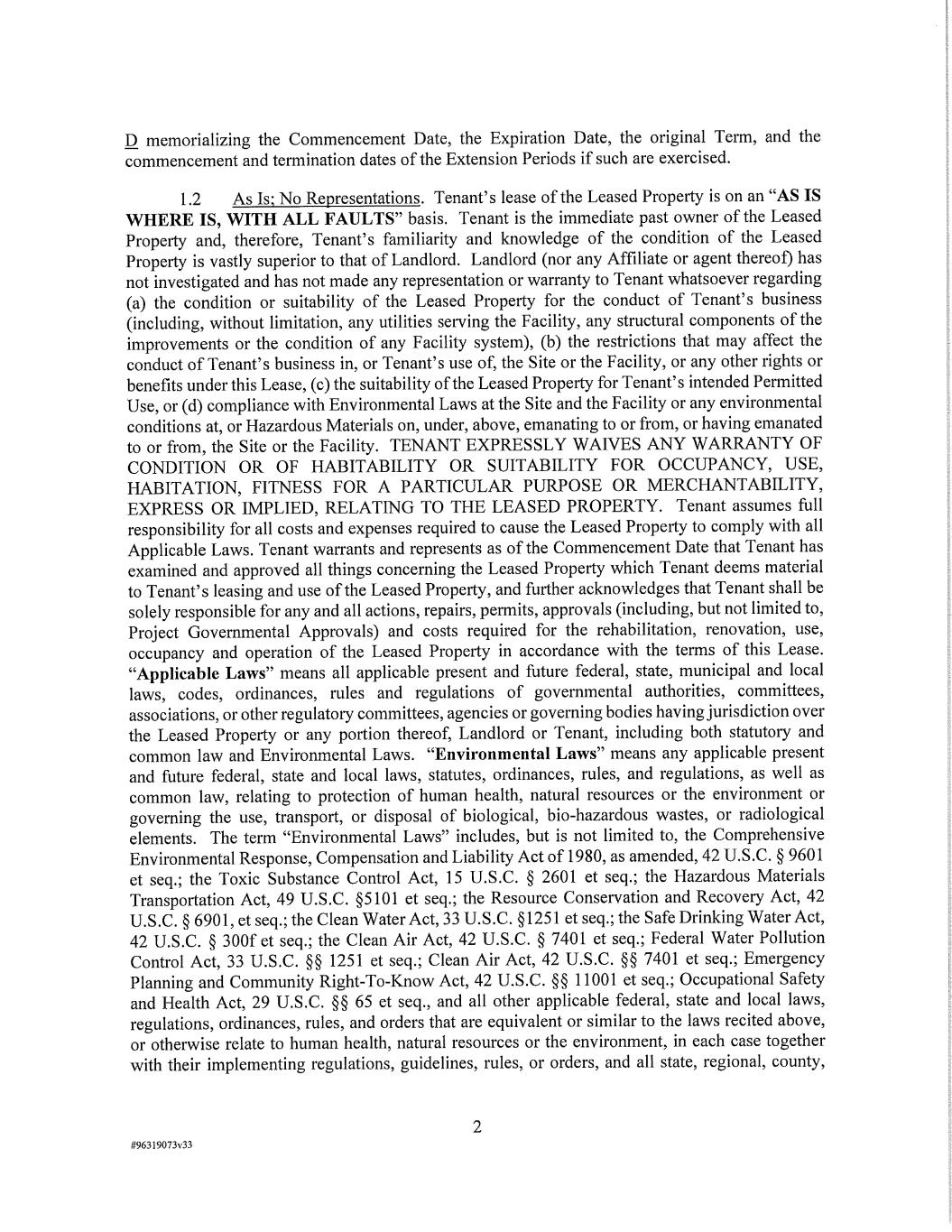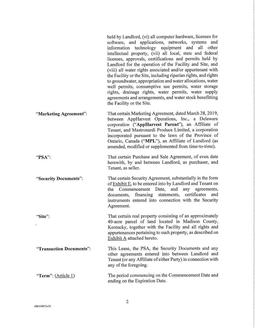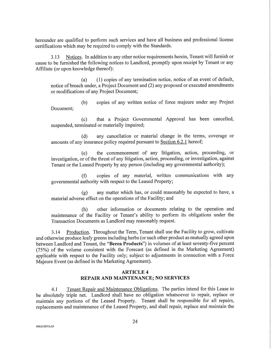 (b)“Berea Project” shall mean the 40.0 acre controlled environment agricultural facility located in Berea, Kentucky owned by Maker, as described in the Mortgage.