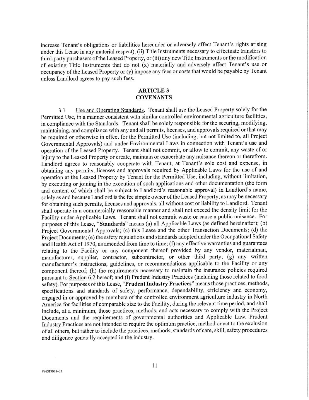 (g)“Prudent Industry Practices” means those practices, methods and standards of inquiry and investigation that are, as of the date being determined, commonly used by developers and operators of controlled environment agriculture facilities in United States which are of similar size, type, and location to the Mortgaged Property. “Prudent Industry Practice” does not necessarily mean the best practice, method, or standard of inquiry and investigation in all cases, but is instead intended to encompass a range of acceptable practices, methods, and standards.