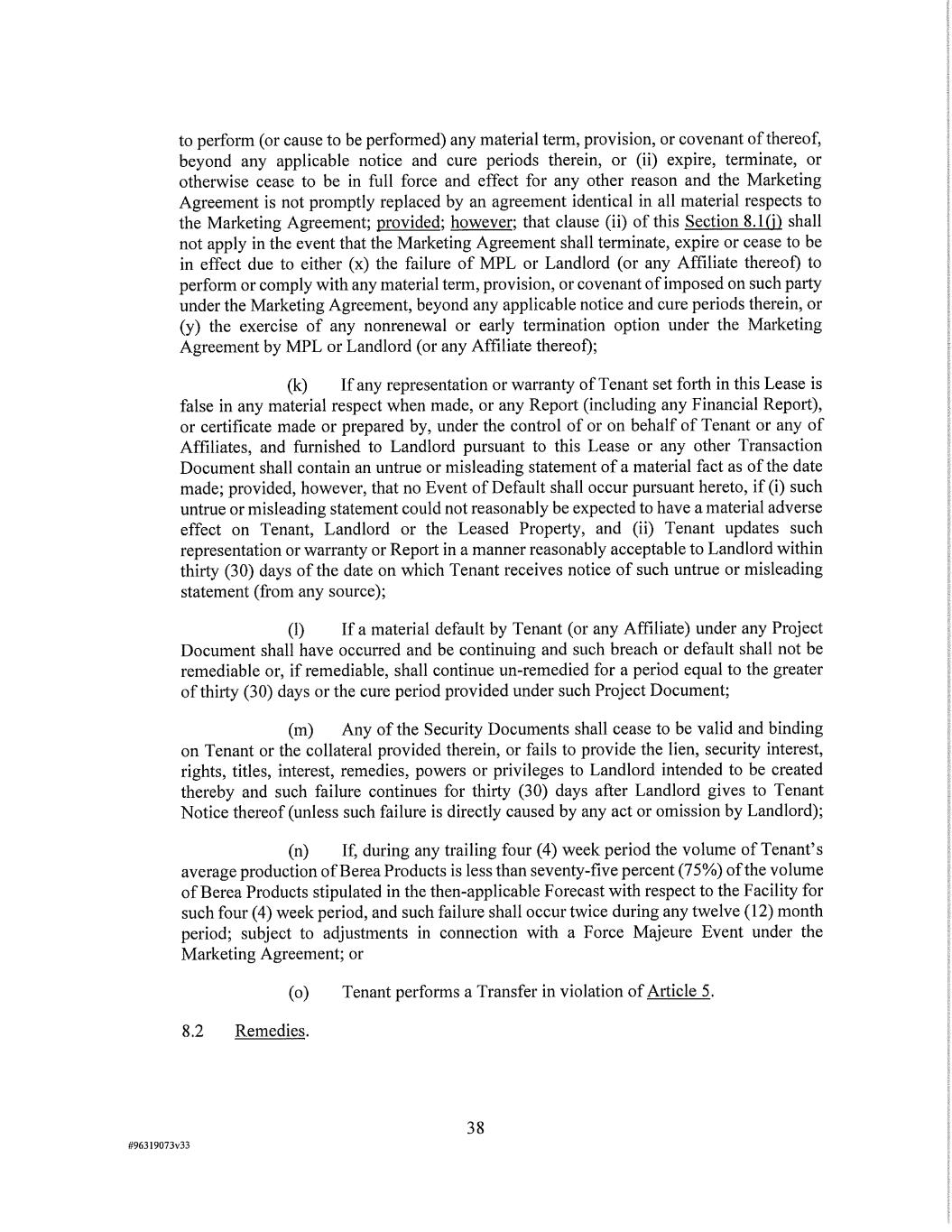 (d)“Berea Project Costs” means all costs and expenses incurred in constructing the Berea Project as set forth in the Berea Project Budget and Schedule. Berea Project Costs shall not include any costs of operating the Berea Project.