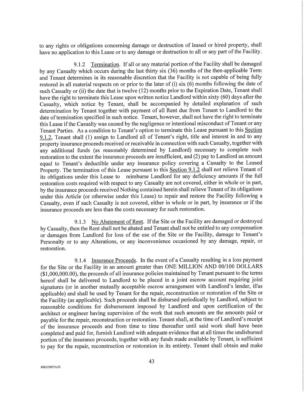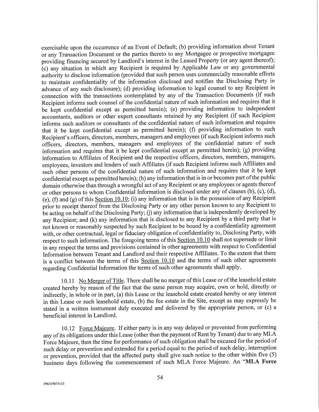 (f)“Force Majeure Delay” shall mean any delays experienced by Maker in the construction process with respect to the Berea Project to the extent such are legitimately caused by strikes, lockouts or other labor disputes, fire, windstorm, hurricane, tornado, earthquake, natural disaster, flooding or other casualty, acts of God, rioting or other civil disturbance, acts of war or acts of terrorism, adverse weather conditions of atypical severity, duration or frequency, or unforeseeable regulatory/code changes from any Governing Authority arising after the date hereof.