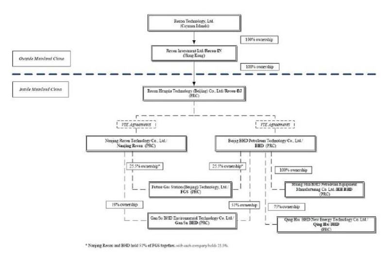 Chinese laws and regulations currently do not prohibit or restrict foreign ownership in petroleum businesses. However, Chinese laws and regulations do prevent direct foreign investment in certain industries. On January 1, 2008, to protect our shareholders from possible future foreign ownership restrictions, the Founders, who also held the controlling interest of BHD and Nanjing Recon, reorganized the corporate and shareholding structure of these entities by entering into certain exclusive agreements with Recon-JN, which entitled Recon-JN to receive a majority of the residual returns. On May 29, 2009 Recon-JN and BHD and Nanjing Recon entered into an operating agreement to provide full guarantee for the performance of such contracts, agreements or transactions entered into by BHD and Nanjing Recon. As a result of the new agreement, Recon-JN absorbed 100% of the expected losses and received 90% of the expected net income of BHD and Nanjing Recon, which resulted in Recon-JN being the primary beneficiary of these Companies.