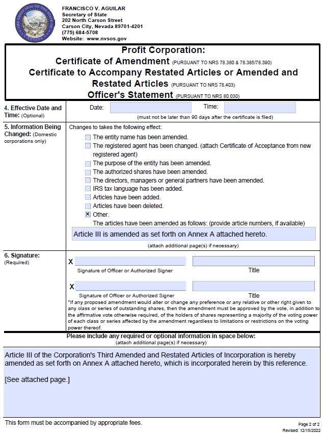 | · | the adoption of an amendment to the Company’s Third Amended and Restated Articles of Incorporation (the “Charter Amendment”) by (i) a majority of the voting power of the Company Common Stock entitled to vote on the Charter Amendment, (ii) the holders of a majority of the outstanding shares of Company Class A Common Stock (voting as a single class) entitled to vote on the Charter Amendment, and (iii) the holders of a majority of the outstanding shares of Company Class B Common Stock (voting as a single class) entitled to vote on the Charter Amendment, (collectively, the “Statutory Charter Amendment Stockholder Approvals”); |