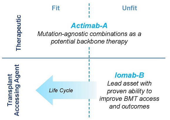 Our Iomab-B and Actimab-A product candidates fill the major unmet medical needs in r/r AML in a complementary fashion as they are directed at different parts of the patient journey. Iomab-B is a targeted bridging therapy that provides both disease control and conditioning in one agent. Results from a phase 3 trial has demonstrated unprecedented access to a BMT and improved survival in unfit patients who are currently not considered transplantable in routine clinical practice. Actimab-A is a targeted therapy for fit patients that has demonstrated an impressive extension in survival in a proof-of-concept study and is poised for advanced development in collaboration with the NCI, or National Cancer Institute. Together, they provide us the opportunity to transform the treatment of AML, especially in the relapsed and refractory segment which represents over 50% of AML patients.