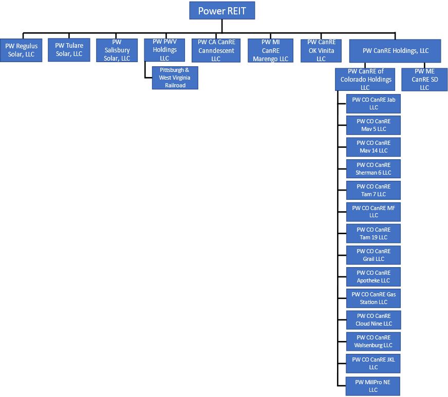 This Annual Report on Form 10-K (this “Annual Report”) document contains forward-looking statements within the meaning of the Securities Act of 1933, as amended (the “Securities Act”), and the Securities Exchange Act of 1934, as amended (the “Exchange Act”). Forward-looking statements are those that predict or describe future events or trends and that do not relate solely to historical matters. You can generally identify forward-looking statements by the use of words such as “believe,” “expect,” “will,” “anticipate,” “intend,” “estimate,” “would,” “should,” “project,” “plan,” “assume” or other similar words or expressions, or negatives of such words or expressions, although not all forward-looking statements can be identified in this way. All statements contained in this document regarding strategy, plans, future operations, projected financial condition or results of operations, prospects, the future of Power REIT’s industries and markets, outcomes that might be obtained by pursuing management’s plans and objectives, and similar subjects, are forward-looking statements. Over time, Power REIT’s actual performance, results, financial condition and achievements may differ from the anticipated performance, results, financial condition and achievements that are expressed or implied by Power REIT’s forward-looking statements, and such differences may be significant and materially adverse to Power REIT and its security holders.