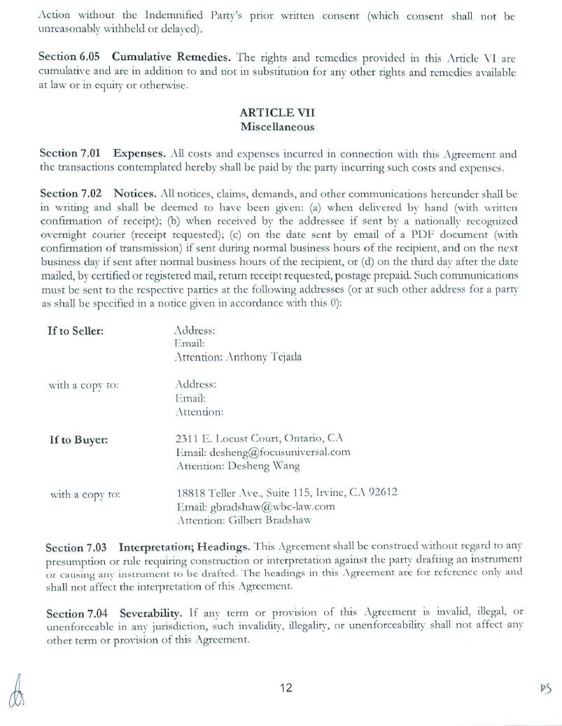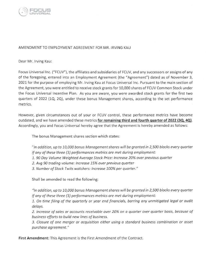 FOCUS UNIVERSAL INC.