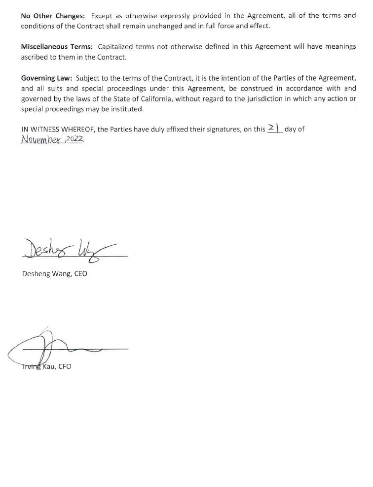 | Dated: March 31, 2023 | By: | /s/ Desheng Wang |