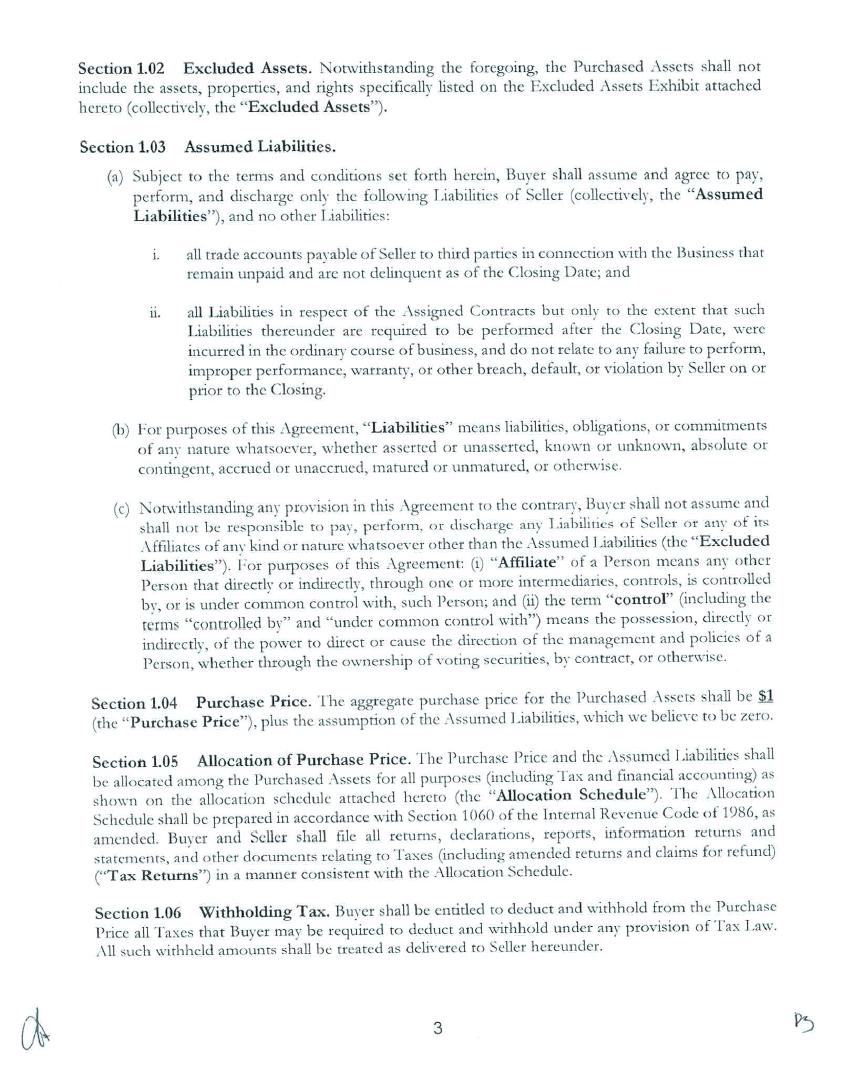 All assets acquired in the Asset Purchase Agreement dated as of December 19, 2022 is hereby contributed.