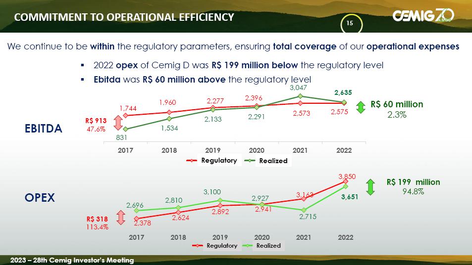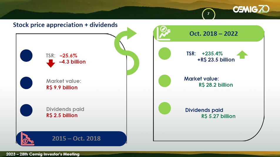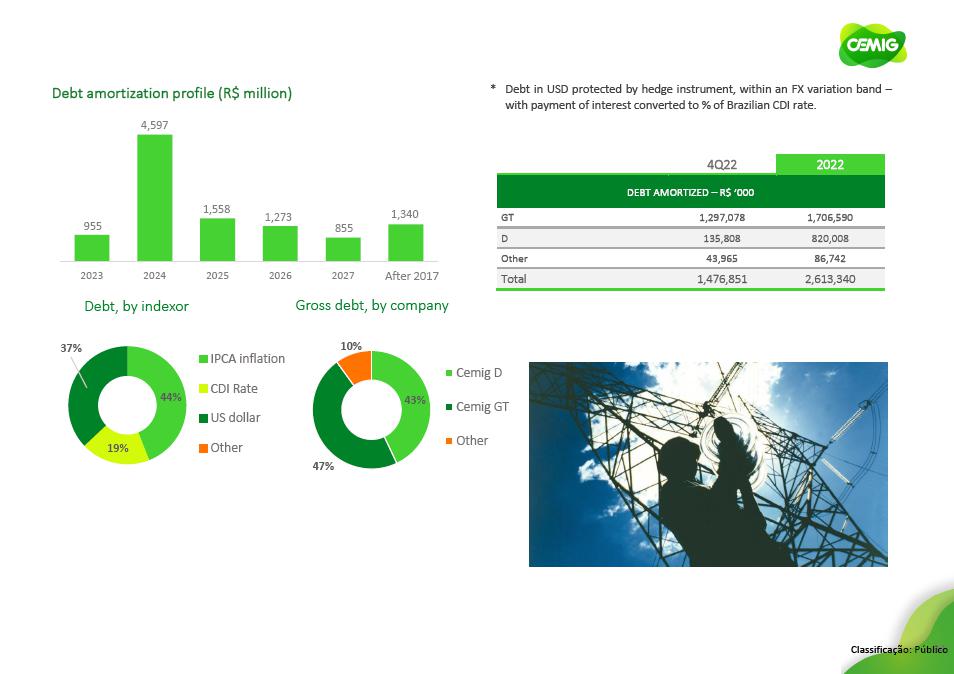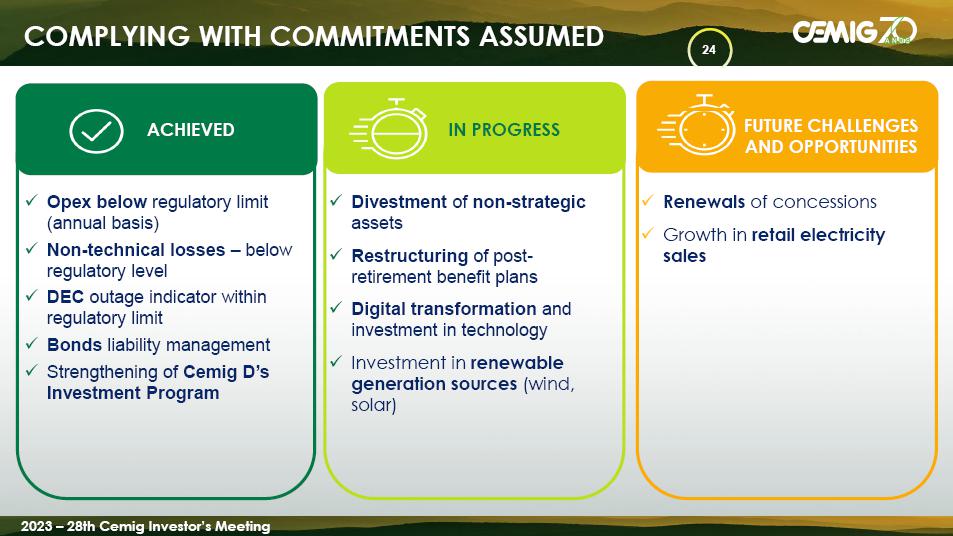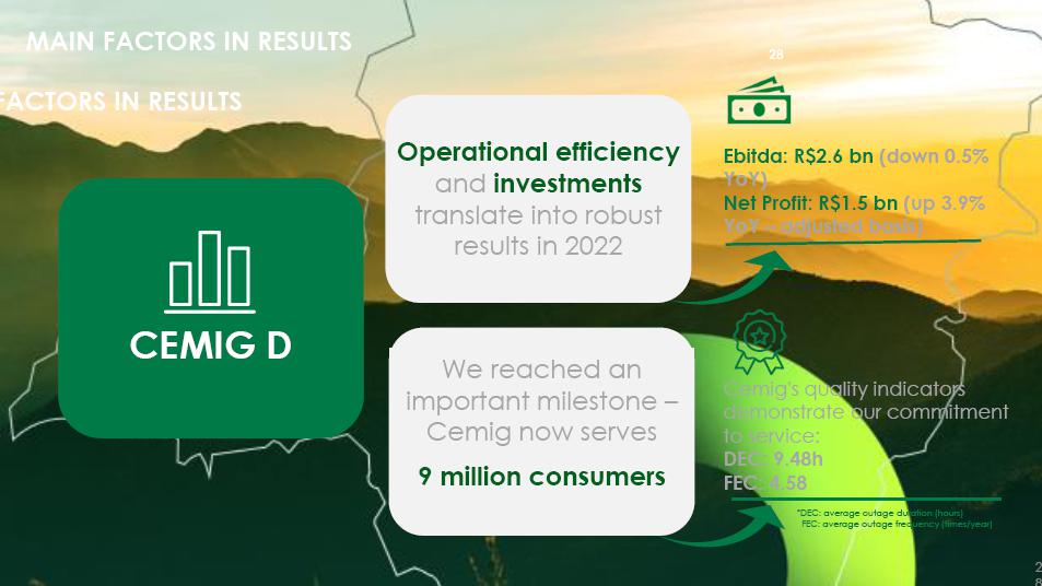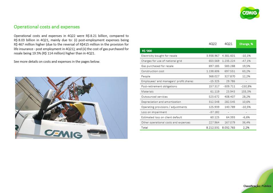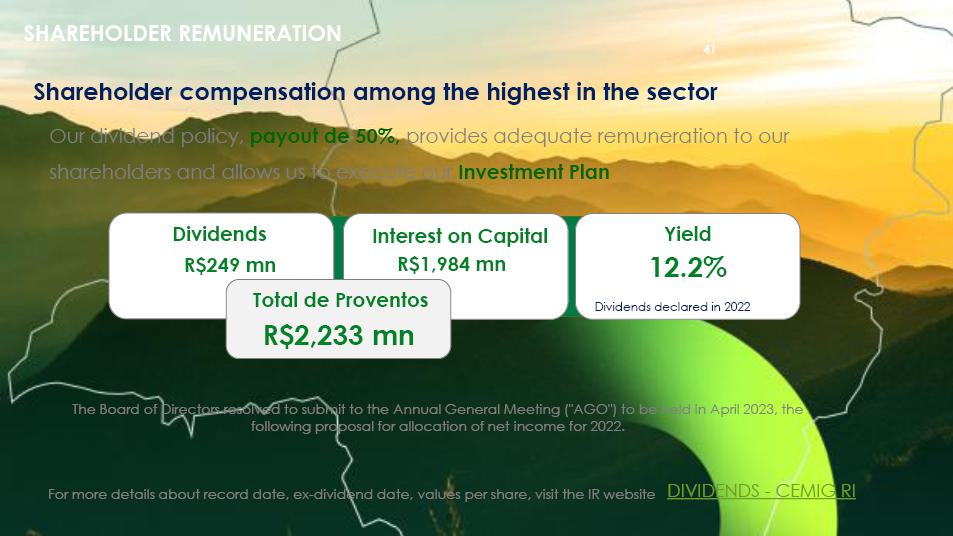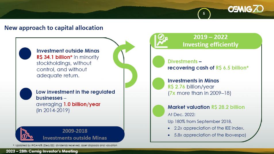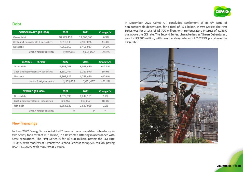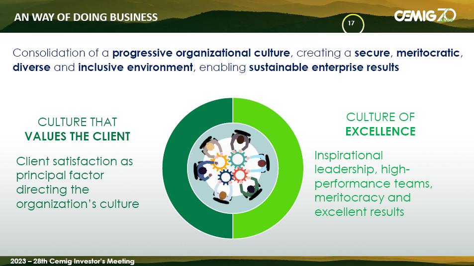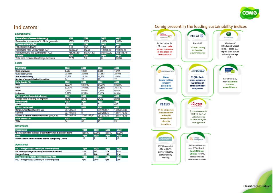 CEMIG reiterates its commitment to focusing on the state of Minas Gerais, mainly engaging in the generation, transmission and distribution of energy, providing excellent services for customers, with safety and maximum efficiency, through sustainable and results-oriented management, making the greatest investment in the Company’s history.