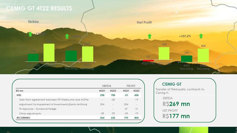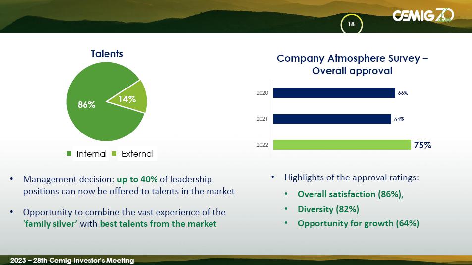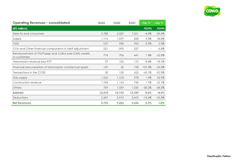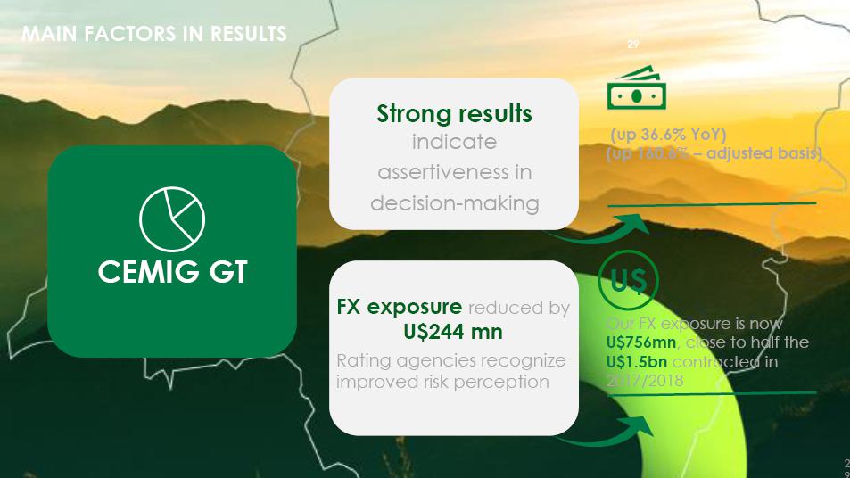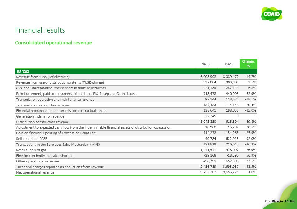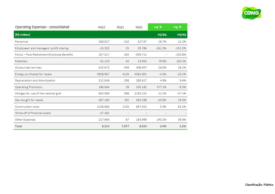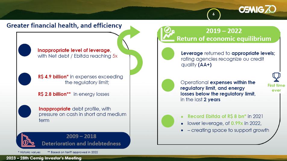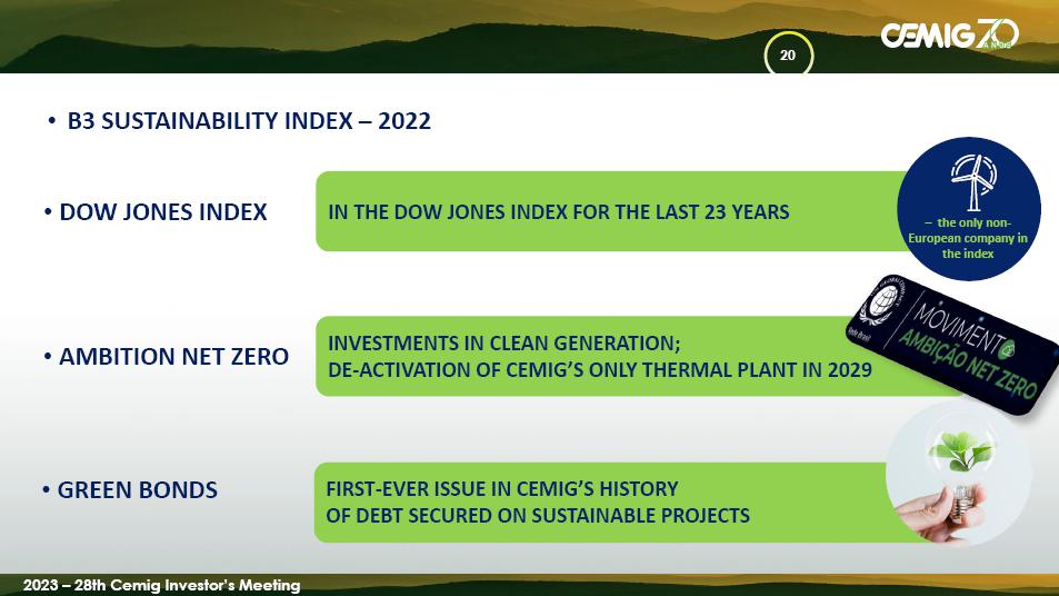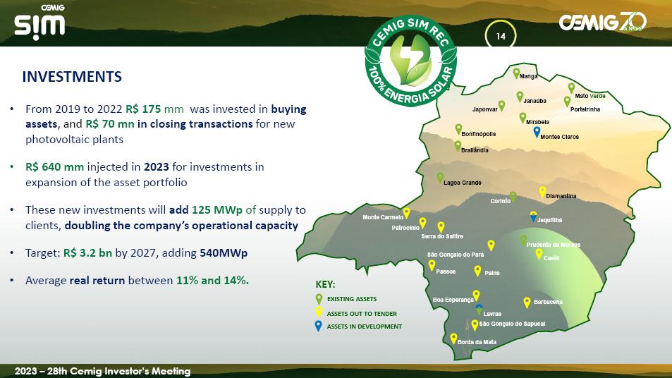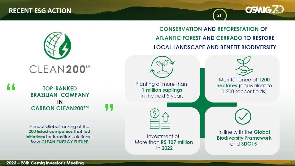CEMIG reiterates its commitment to focusing on the state of Minas Gerais, mainly engaging in the generation, transmission and distribution of energy, providing excellent services for customers, with safety and maximum efficiency, through sustainable and results-oriented management, making the greatest investment in the Company’s history.