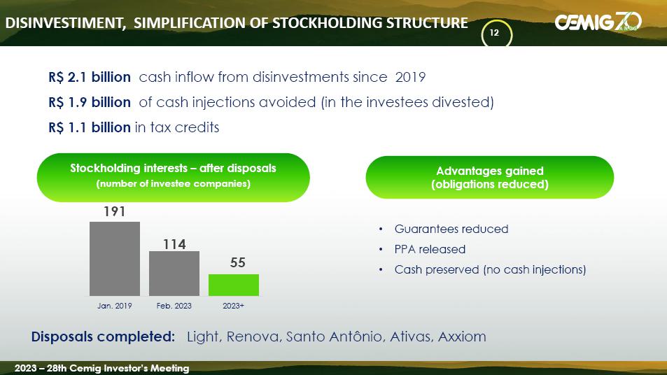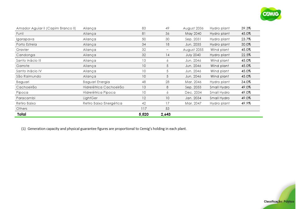 The aforementioned sale aims at complying with the guidelines of CEMIG’s strategic planning that recommends the optimization of the asset portfolio to improve operational efficiency and capital allocation.