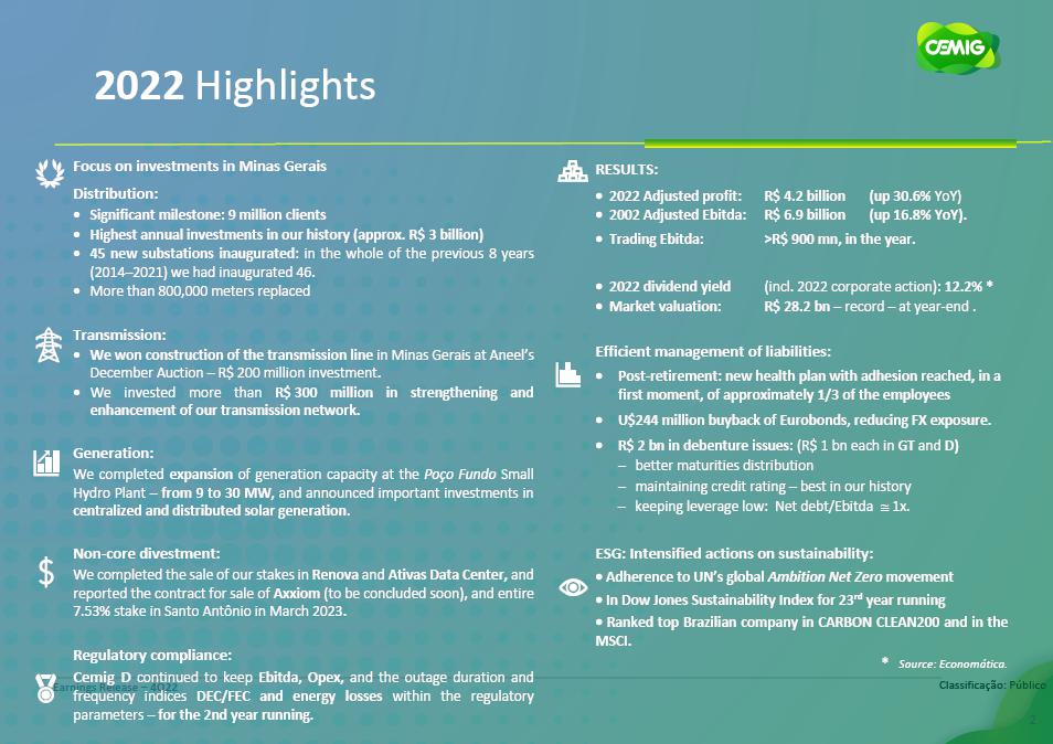 | 6. | Material Announcement dated February 17, 2023 - Cemig informs ANEEL its interest in extending the concession of the Sá Carvalho UHE. |