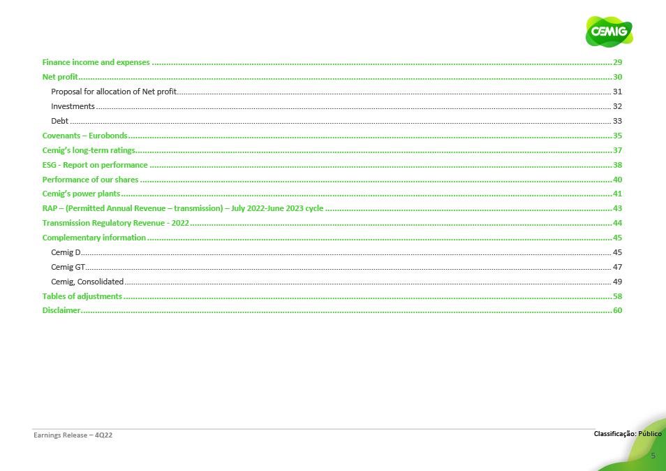 | 5. | Material Announcement dated March 27, 2023 – CEMIG discloses investment projections for the 2023 – 2027 period. |
