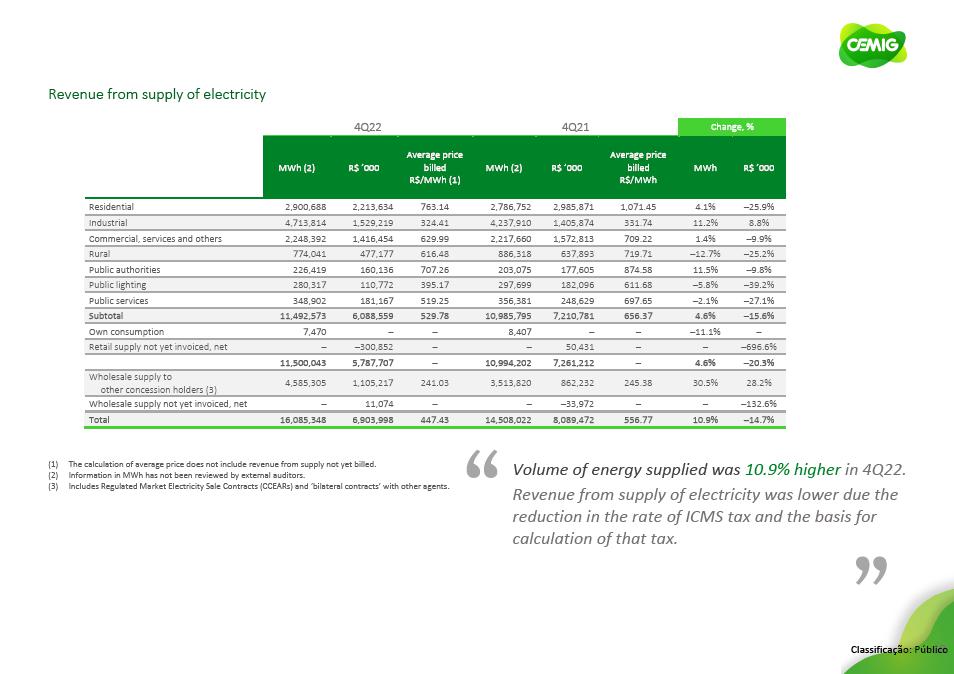 | 3. | Notice to the Market - Cemig 4Q 2022 Results – Presentation. |