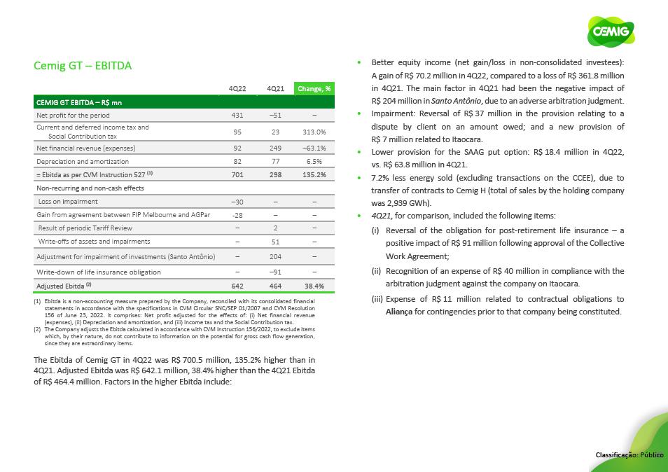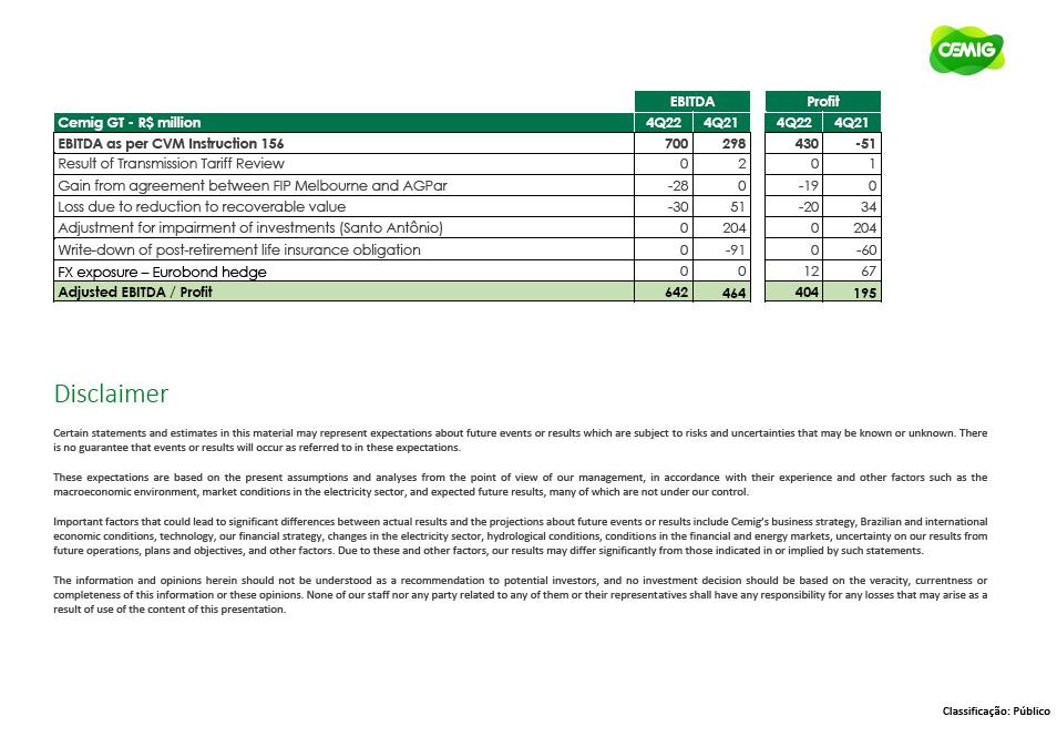 CEMIG and CEMIG GT reaffirm their commitment to keeping shareholders, the market in general, and other stakeholders duly and timely informed about this matter, according to the applicable regulation, and in compliance with the restrictions set out in CVM rules and other applicable laws.