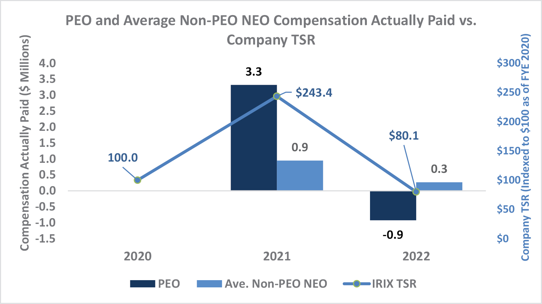 1 U P X 01 David I. Bruce 04 Beverly A. Huss 02 Nandini Devi 05 Kenneth E. Ludlum 03 Robert Grove, Ph.D. 06 Scott Shuda For Against Abstain For Against Abstain For Against Abstain Using a black ink pen, mark your votes with an X as shown in this example. Please do not write outside the designated areas. 03SR6B + + This Proxy should be marked, dated, signed by the stockholder(s) exactly as his or her name appears hereon, and returned promptly in the enclosed envelope. Persons signing in a fiduciary capacity should so indicate. If shares are held by joint tenants or as community property, both should sign. If a corporation, please sign in full corporate name by authorized person. If a partnership, please sign in partnership name by authorized person. Date (mm/dd/yyyy) Please print date below. Signature 1 Please keep signature within the box. Signature 2 Please keep signature within the box. B Authorized Signatures This section must be completed for your vote to count. Please date and sign below. qIF VOTING BY MAIL, SIGN, DETACH AND RETURN THE BOTTOM PORTION IN THE ENCLOSED ENVELOPE.q Annual Meeting Proxy Card A Proposals The Board of Directors recommends a vote FOR each of the nominees listed in Proposal 1, and FOR Proposals 2, 3, 4 and 5. 2. To ratify the appointment of BPM LLP as the Company’s independent registered public accounting firm for fiscal year 2023 ending December 30, 2023. 3. To conduct an advisory vote to approve the compensation of the Company’s named executive officers. 1. Election of Directors: For Against Abstain For Against Abstain In his discretion, the proxy and attorney-in-fact is authorized to vote upon such other matters which may properly come before the meeting and any adjournment(s) or postponement(s) thereof. 4. To approve of the 2008 Equity Incentive Plan, as amended. 5. To approve of the amendment to the Amended and Restated Certificate of Incorporation to eliminate or limit the personal liability of officers. If no electronic voting, delete QR code and control PRELIMINARY PROXY CARD SUBJECT TO COMPLETION You may vote online or by phone instead of mailing this card. Online Go to www.envisionreports.com/IRIX or scan the QR code login details are located in the shaded bar below. Save paper, time and money! Sign up for electronic delivery at www.envisionreports.com/IRIX Phone Call toll free 1-800-652-VOTE (8683) within the USA, US territories and Canada Votes submitted electronically must be received by June 13, 2023 at 11:59 P.M., Eastern Time. Your vote matters here’s how to vote