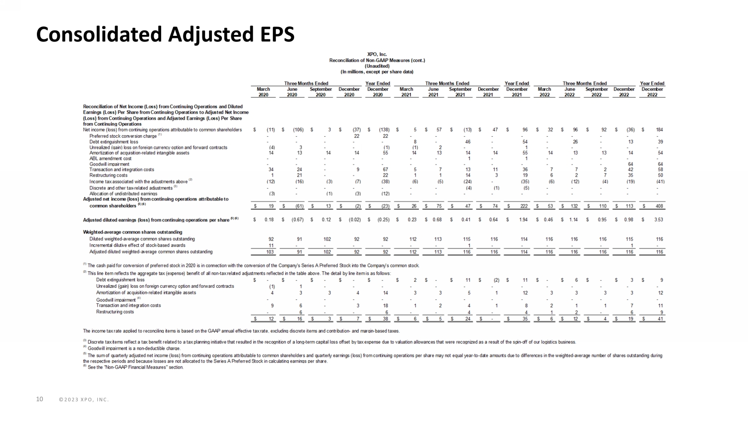 ©2023 XPO, INC. 10 Consolidated Adjusted EPS