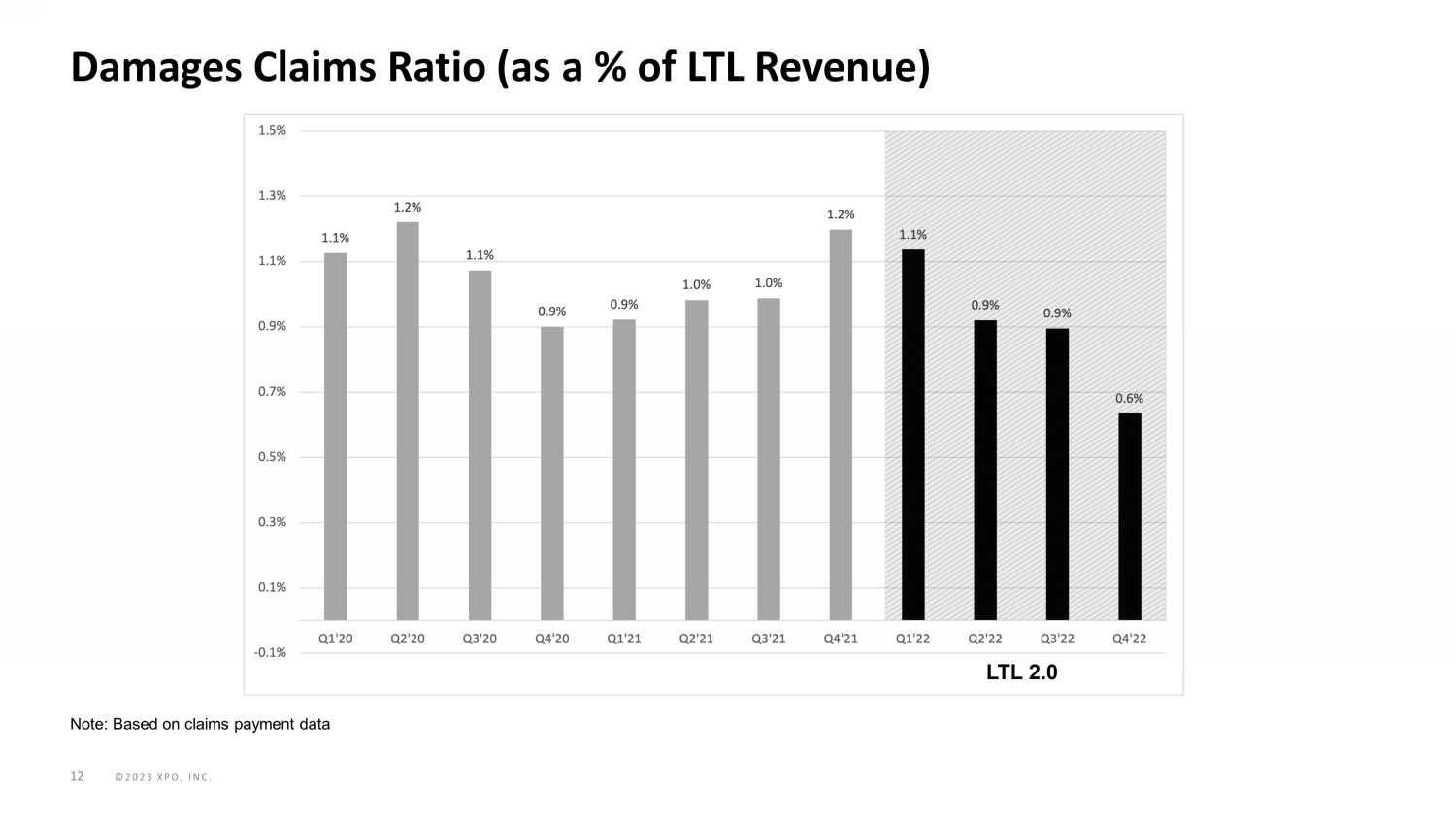 ©2023 XPO, INC. Appendix Slide 12: Damages Claims Ratio