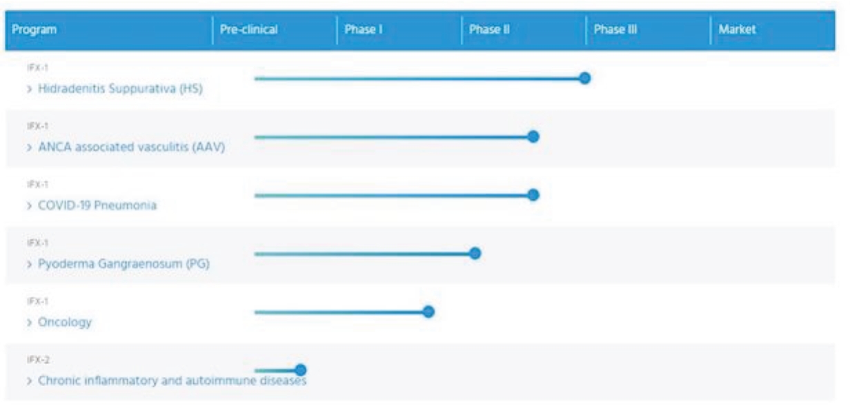 As of June 1, 2020, we owned one pending patent application under the PCT covering the use of an inhibitor of C5a activity, for example, IFX-1, for treating COVID-19 which, if granted, would be expected to expire in 2040, excluding any additional term for patent term adjustments or patent term extensions.