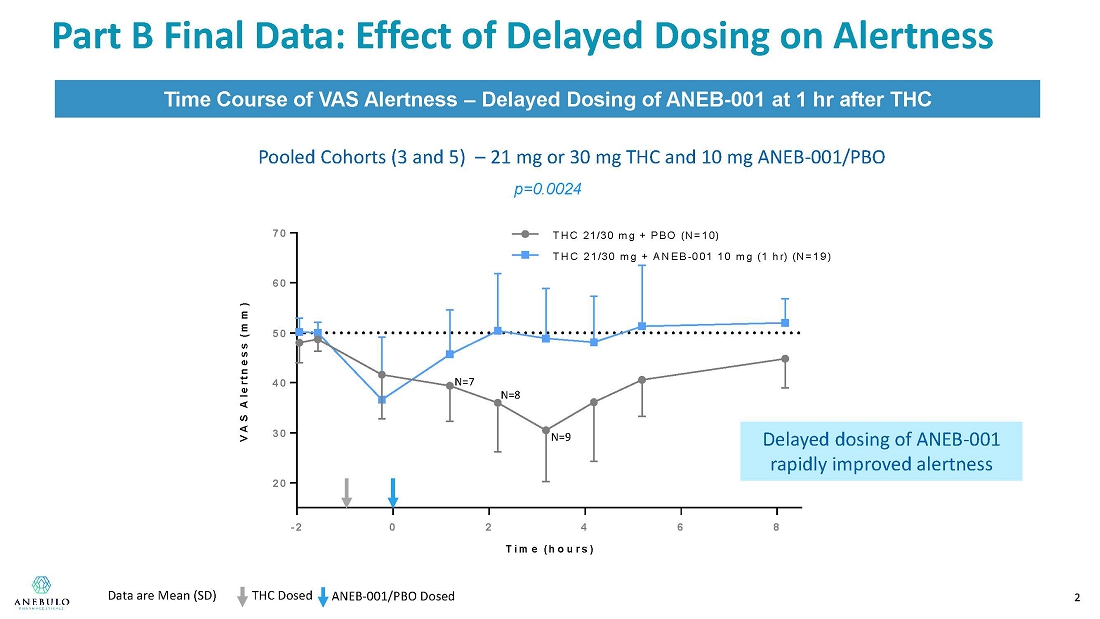 On March 28, 2023, Anebulo Pharmaceuticals, Inc. filed a Current Report on Form 8-K (the “March 8-K”) that included results from its randomized, double-blind, placebo-controlled Phase 2 clinical trial evaluating ANEB-001 as a potential treatment for ACI in healthy volunteers challenged with oral delta-9-tetrahydrocannabinol. The charts contained in Exhibit 99.1 to this Current Report on Form 8-K are incorporated by reference herein and graphically present data that is consistent with the data reported in the March 8-K.