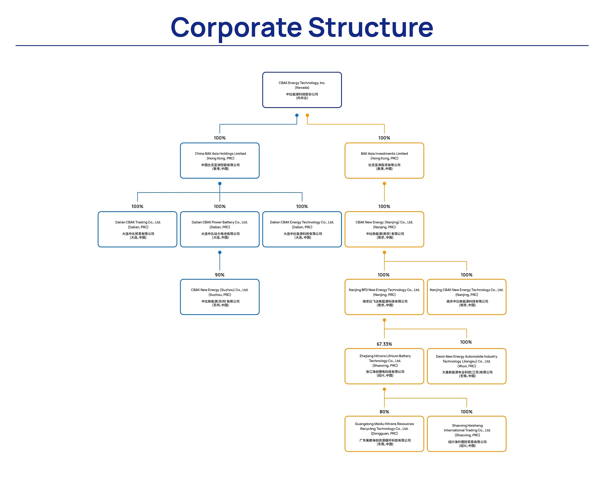 CBAK Energy Technology, Inc. is a holding company incorporated in Nevada, the United States, with no material operations of its own. We conduct our business through our operating subsidiaries in China. This structure involves unique risks to investors, and you may never directly hold equity interests in the operating entities.