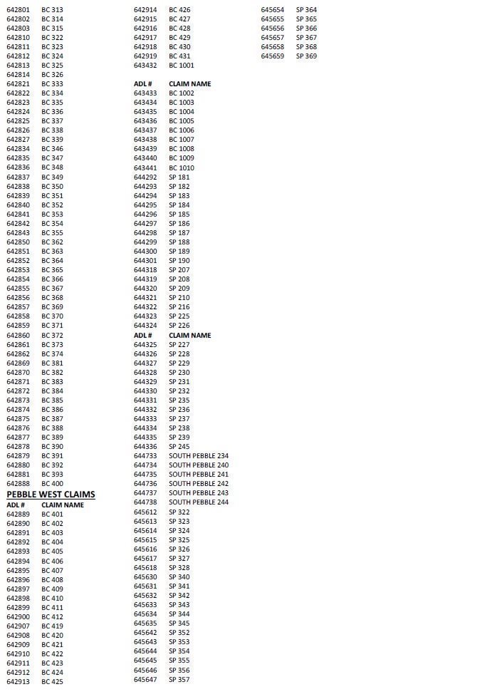| 10. | I have had prior involvement with the property as an author of technical reports in 2021, 2020, 2018, 2014, 2010, 2009 and 2008 and ongoing review of engineering work related to Pebble. |