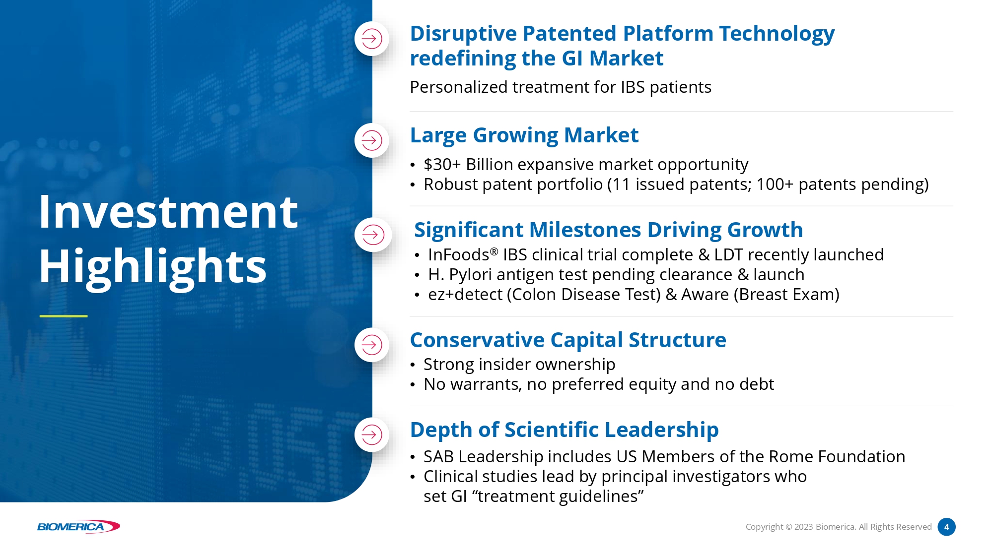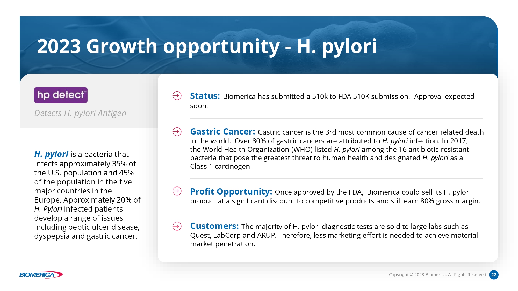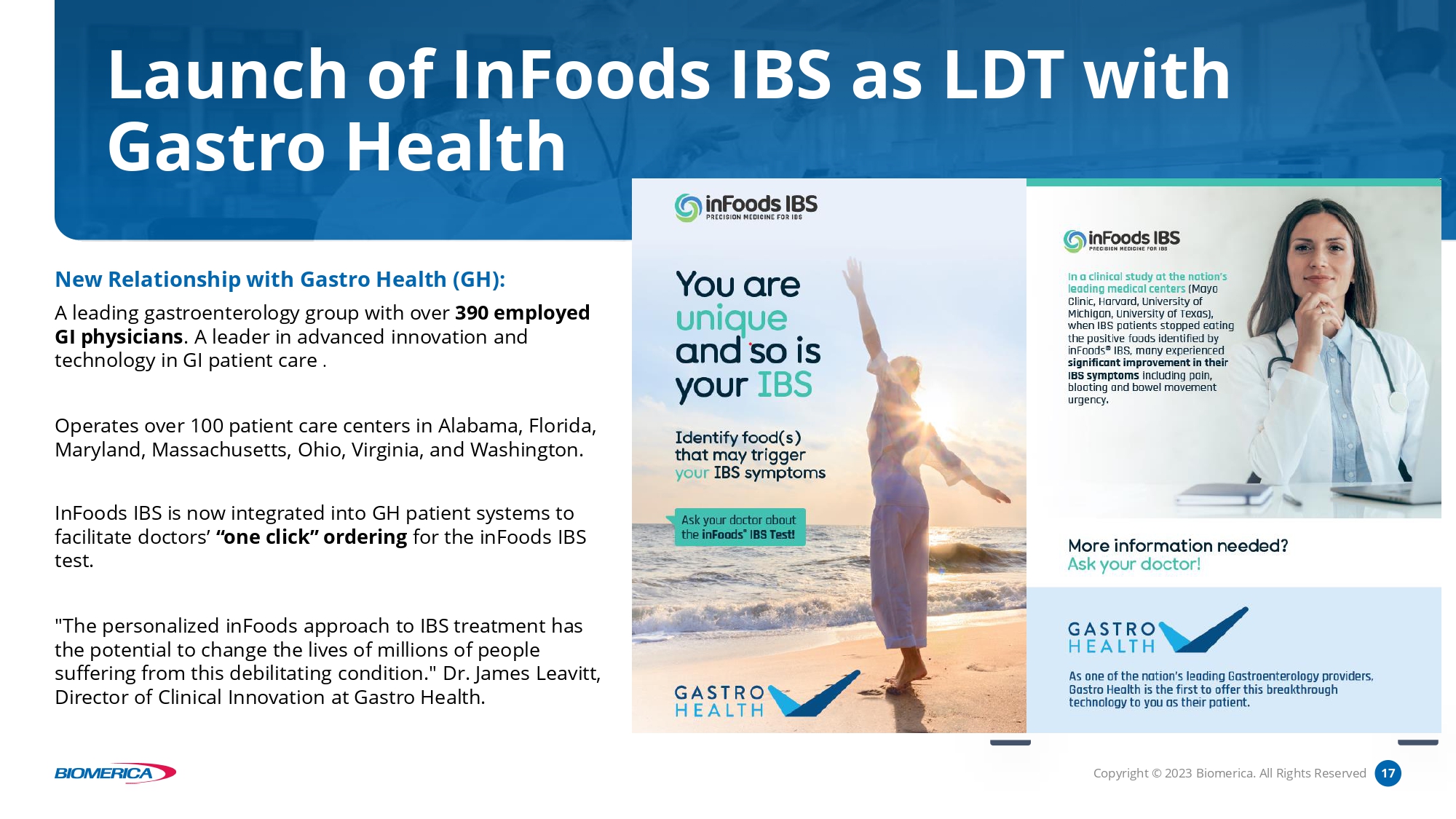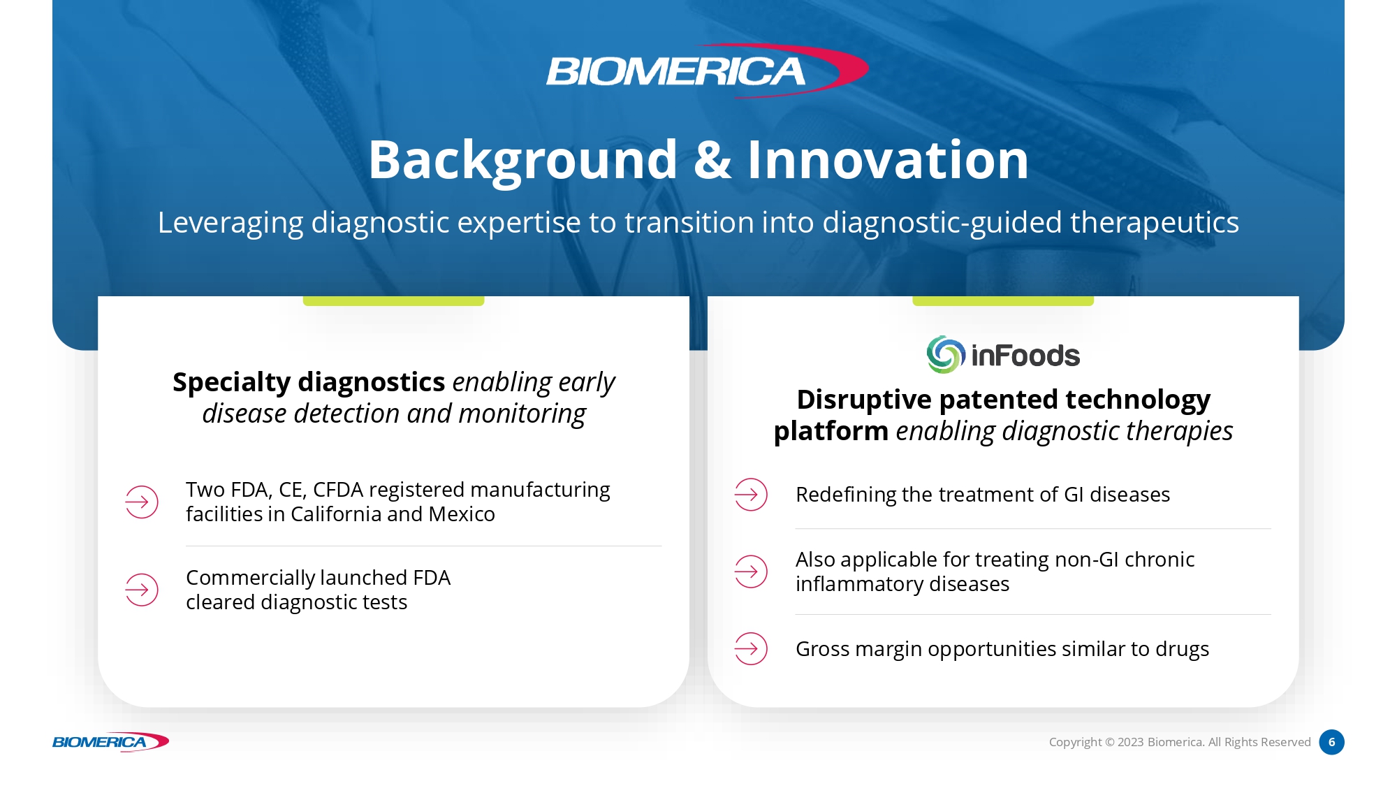 On April 25, 2023, Biomerica, Inc. (“the “Company”) presented an investor presentation to the investment community. The updated investor presentation includes slides pertaining to the Company’s new relationship with Gastro Health, the leading gastroenterology group with over 390 employed physicians, and operating over 100 patient care centers in Alabama, Florida, Maryland, Massachusetts, Ohio, Virginia, and Washington. The investor presentation is attached hereto as Exhibit 99.1.