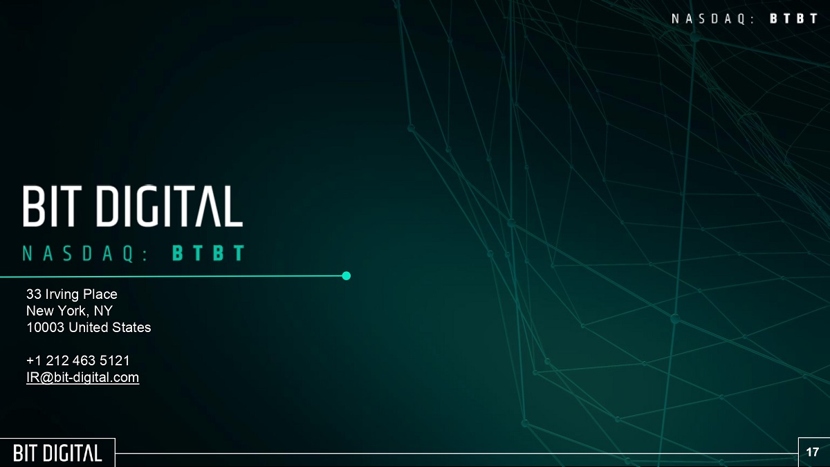 | 99.1 | Slide presentation titled “Bit Digital is an American Sustainability-Focused Generator of Digital Assets” |
