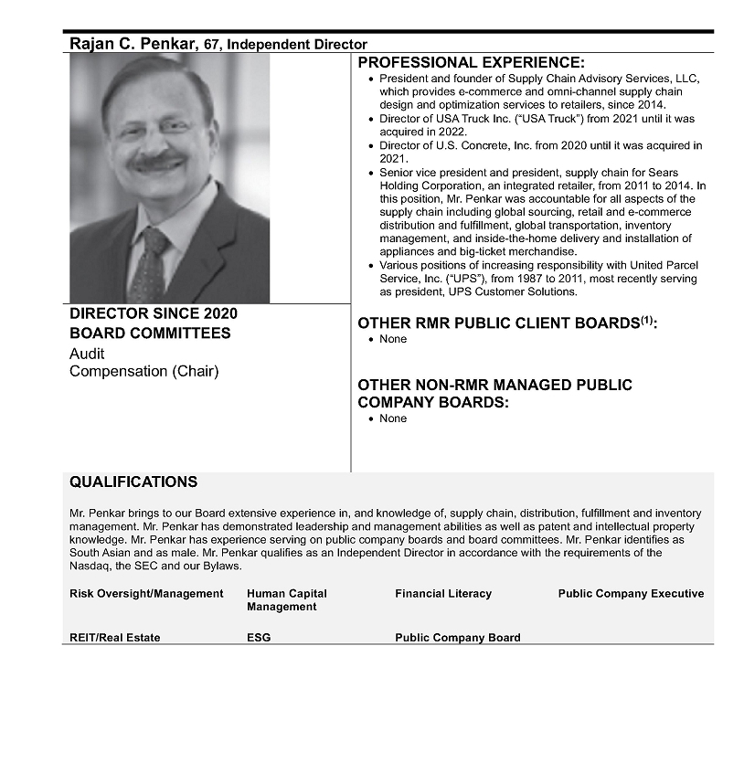 Additionally, each of Messrs. Pertchik, Crage, and Young during 2022 received share awards from RMR Inc. and Other RMR Clients, including SVC, in their capacities as officers of RMR.